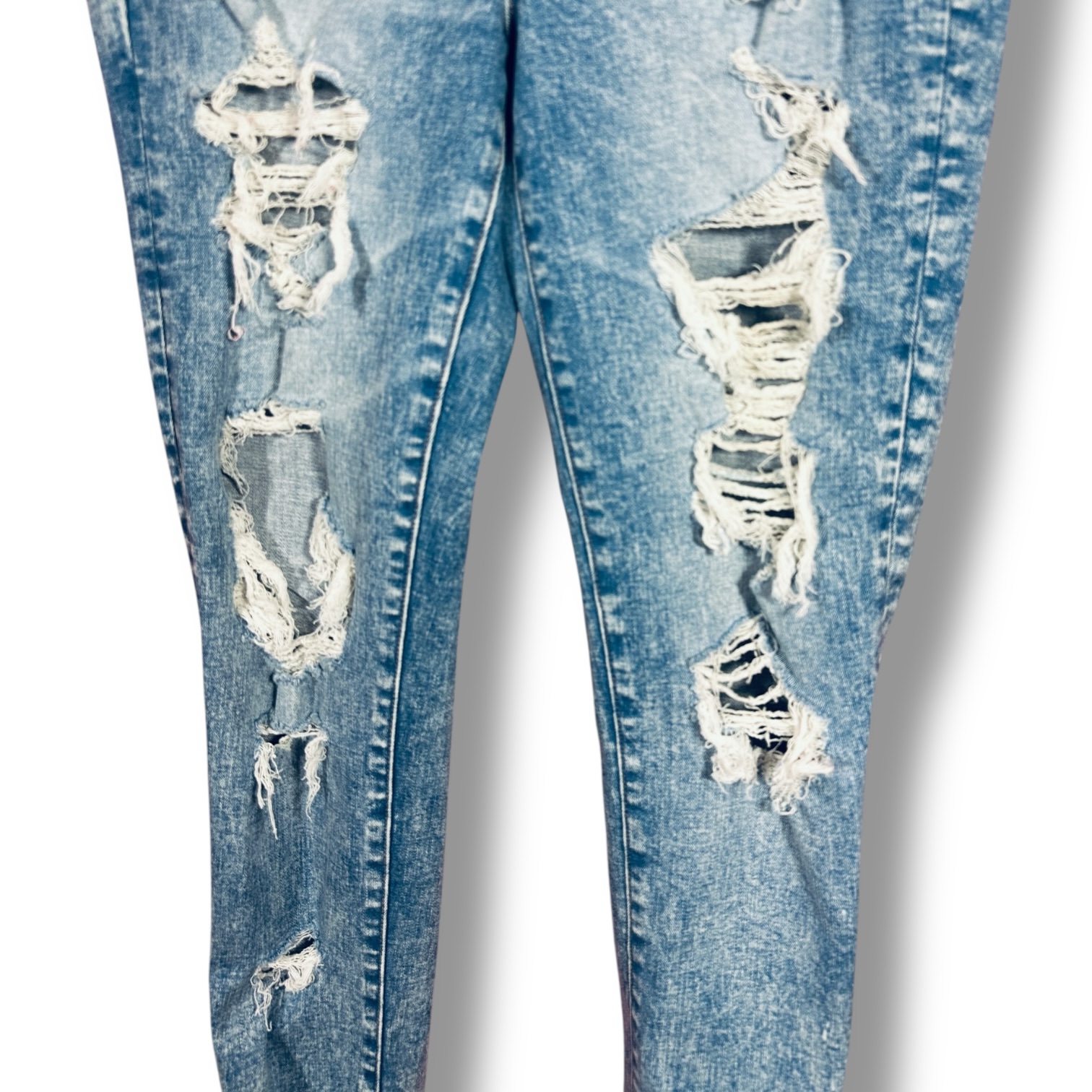 These American Eagle Next Level Stretch skinny jeans combine comfort and style with soft stretch denim that moves with you. The medium wash and distressed detailing give them a casual lived-in look, while the raw ankle hems add a slightly edgy finish. Perfect everyday denim to pair with sneakers, boots, or your favorite cozy sweater.