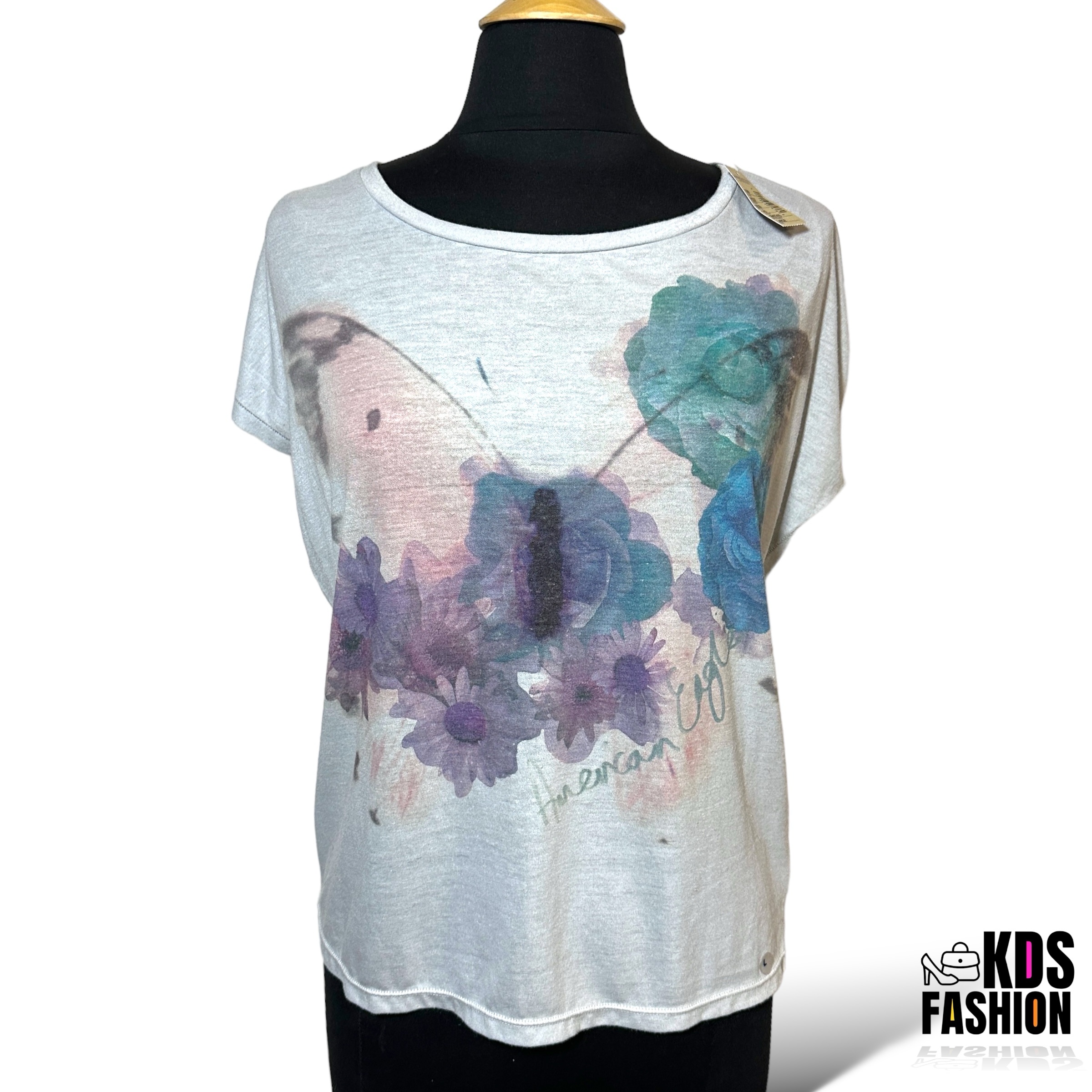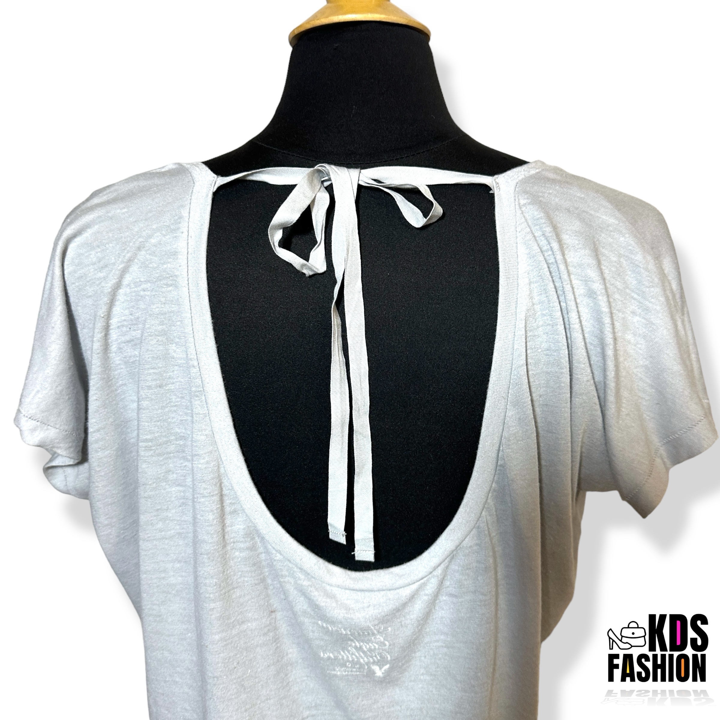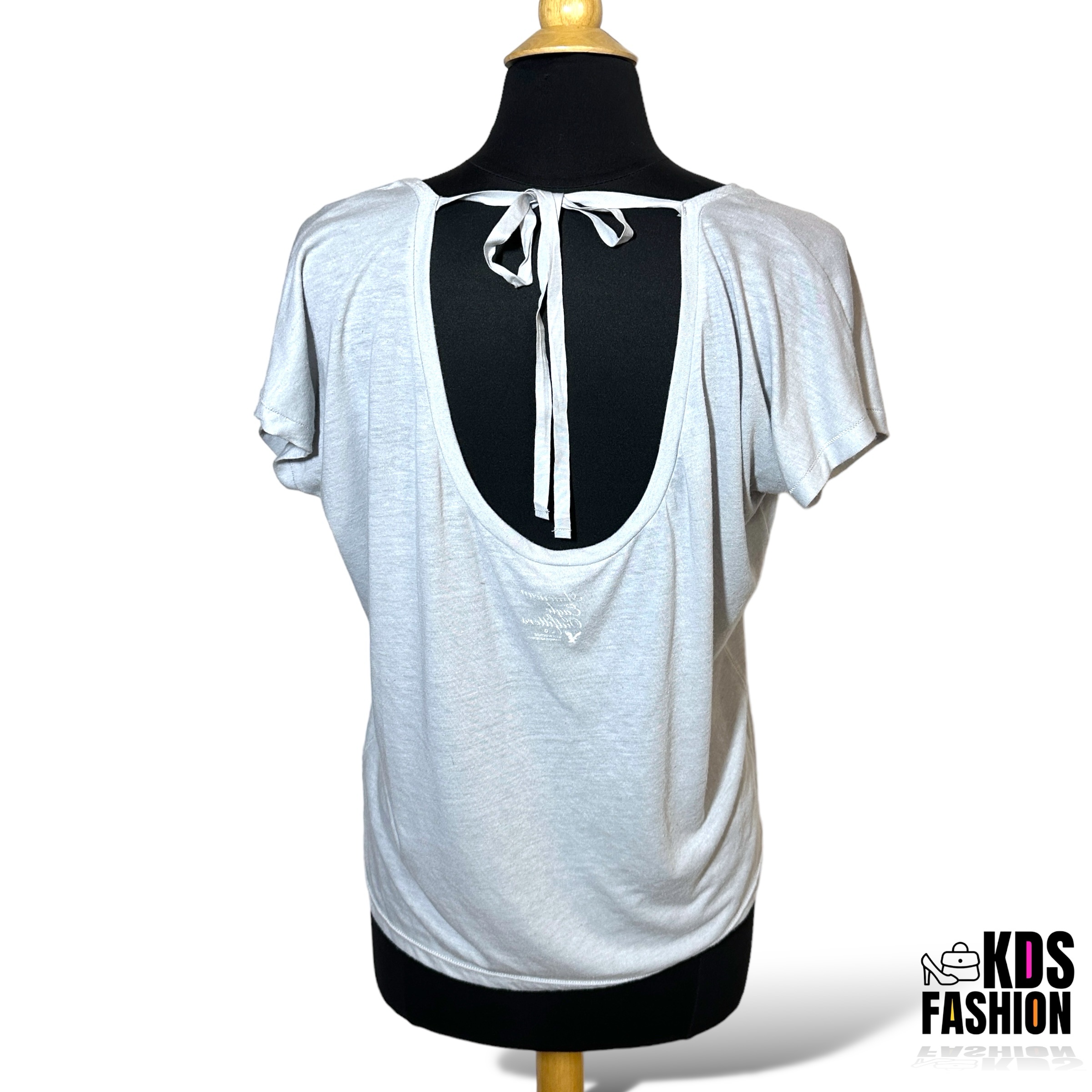 Introducing the American Eagle Tie-Back Floral Print Tee in US Women’s Large size in a pale lilac color. This delightful top features a cute keyhole and ties at the neck, perfect for adding a touch of femininity to your spring or summer wardrobe. With a chest size of 25” and a length of 24”, this lightweight tee is ideal for those warmer days.