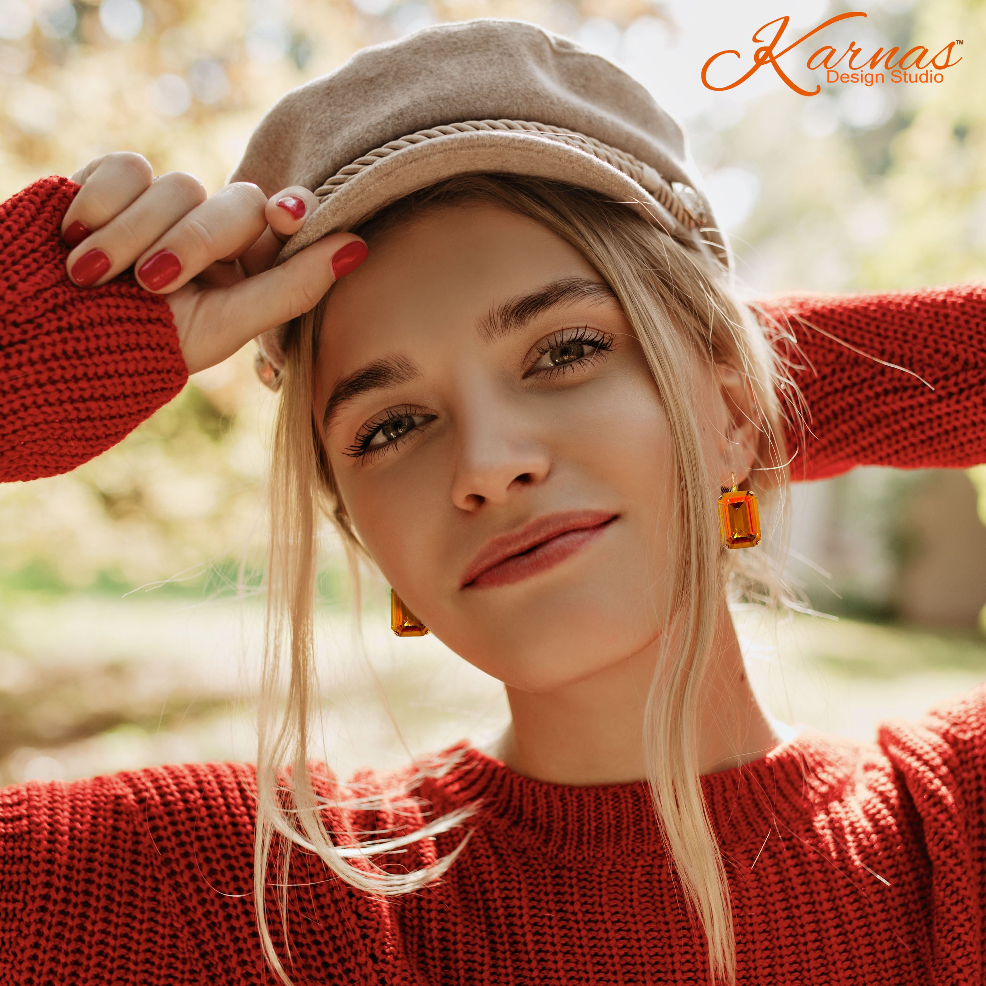 Turn up the glow with these fiery Astral Pink earrings, feature bold emerald-cut crystals that shimmer with rich orange and red undertones. Perfect for adding a warm pop of color to your fall outfits, these statement earrings are lightweight, elegant, and designed to catch every flicker of autumn light.