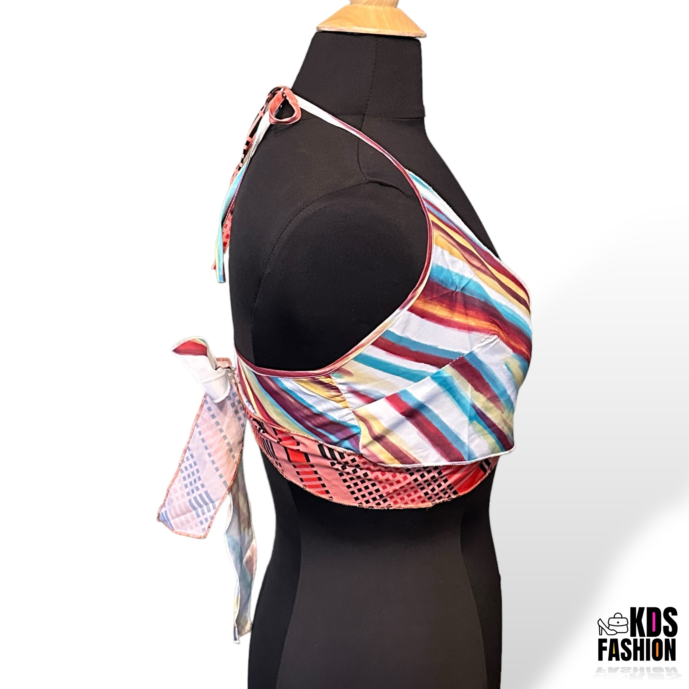 Elevate your summer style with this never-worn Bohemian Cropped Wrap Tie Top in a stunning white and multi-color design. Perfect for beach trips and summer festivities, this lightweight and sexy top effortlessly fuses comfort with fashion-forward style. Its medium size ensures a great fit, and the boutique brand adds a touch of exclusivity. Add this must-have to your collection of new arrivals for a chic and charismatic look that’s ready for any casual or beach occasion.