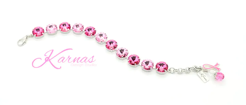 Finish: Photos show Shiny Silver with Charms (additional options available in drop down menu). Pink ribbon charm can vary in color and hue.