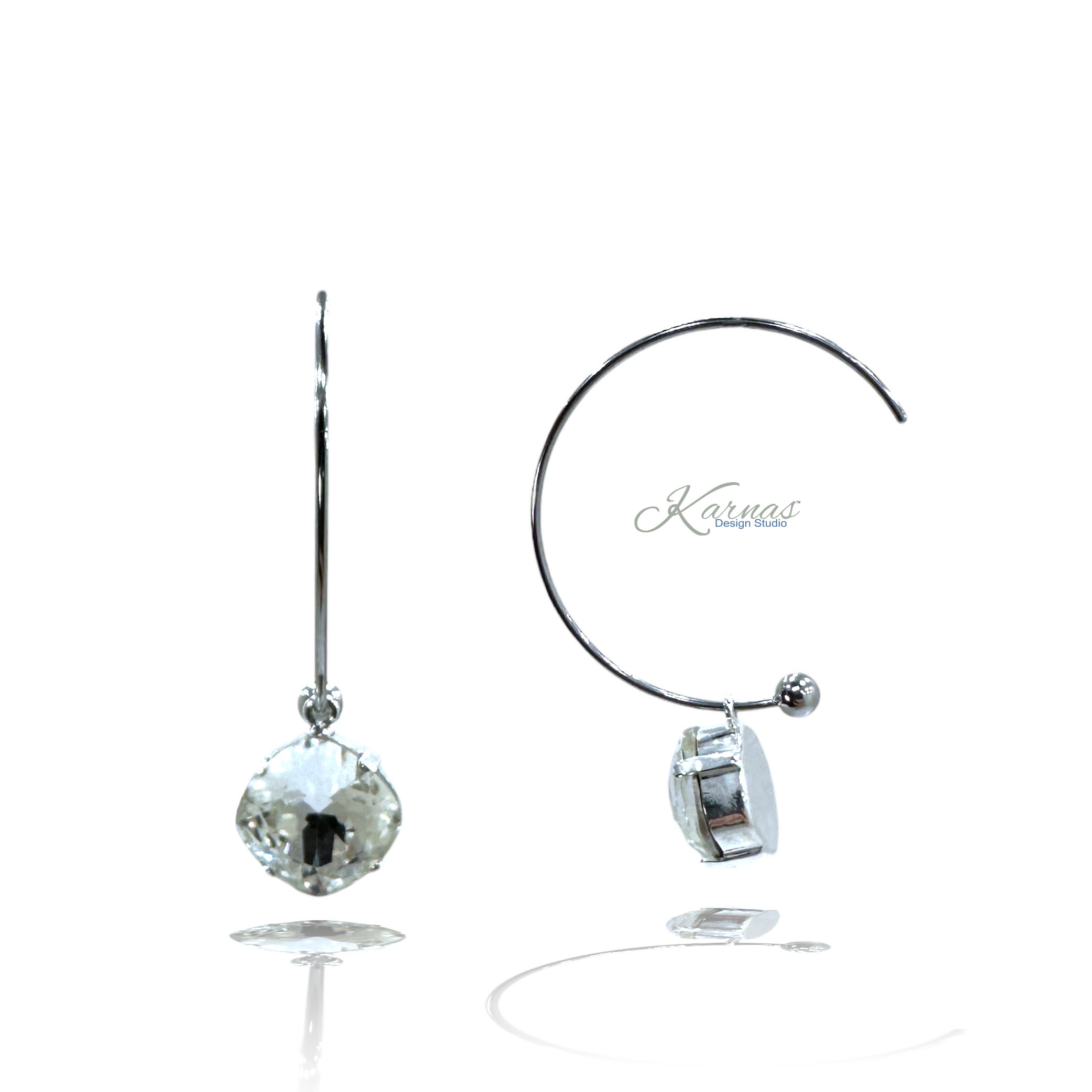 Genuine 12mm cushion cut (square) crystal pendants hanging on modern hoops. Choose your color from the drop down menu. Order additional colors separately or just extra hoops as well! Each dangling pendant is easily removable and color changes take seconds.