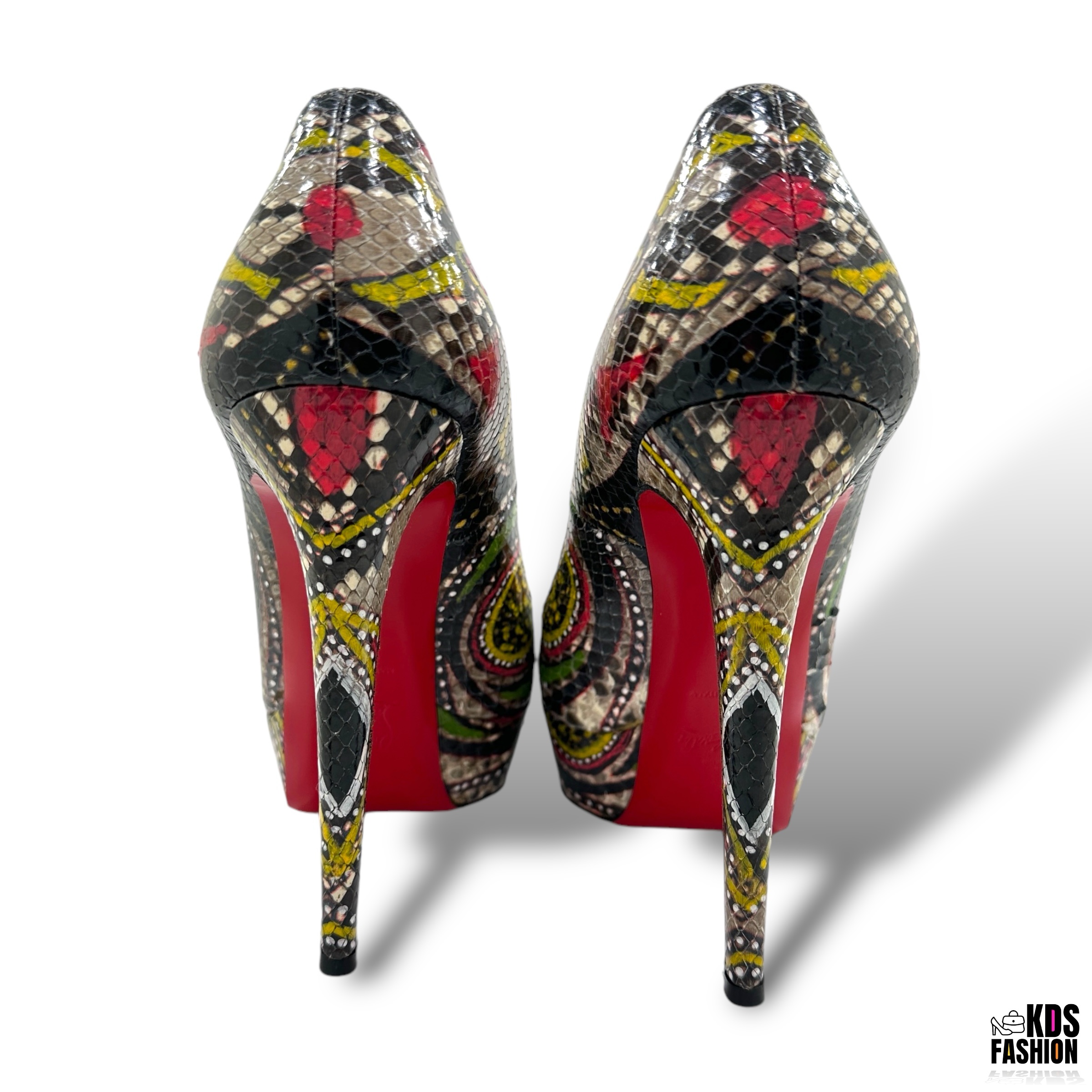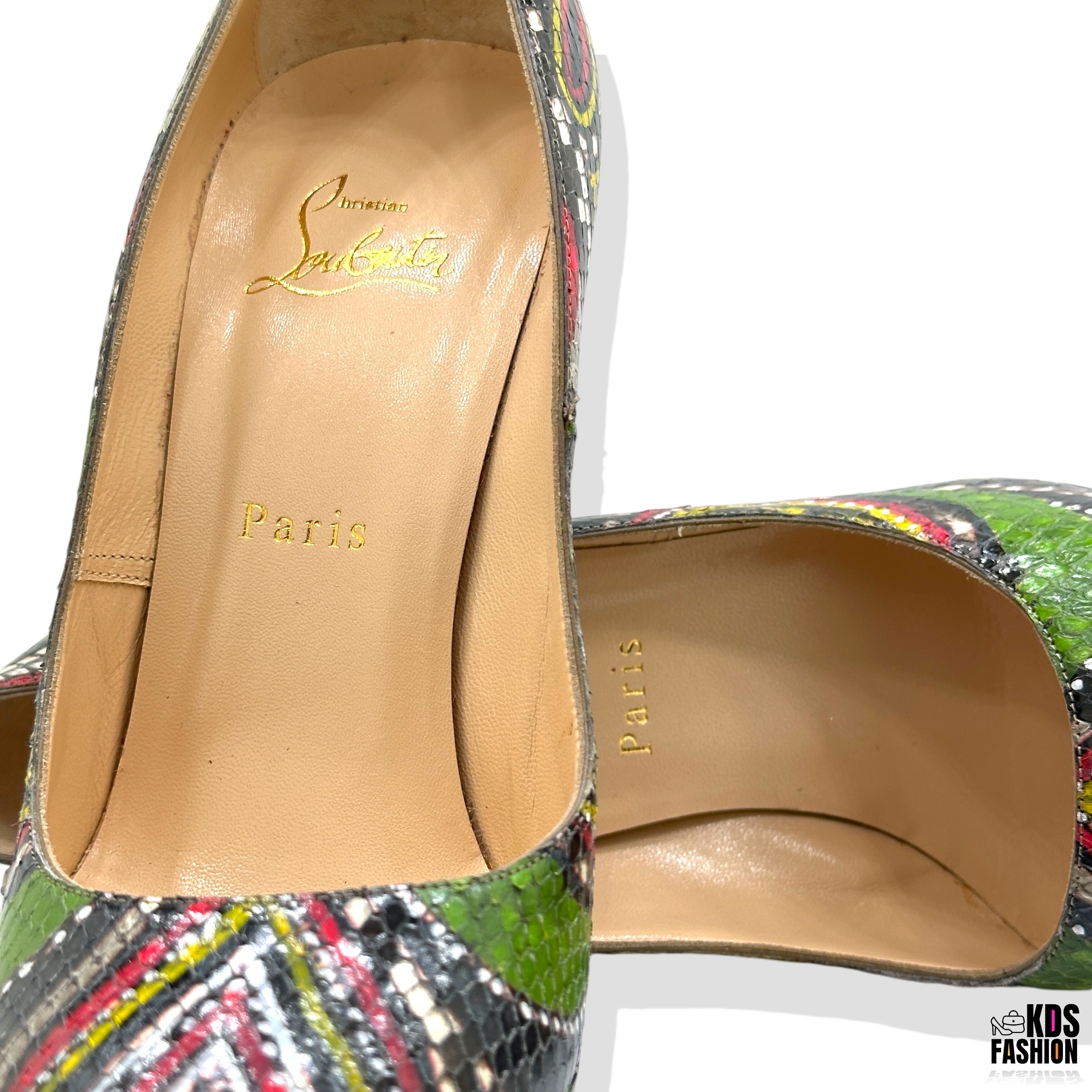 Like new condition, very little wear on bottoms. These are a size 39 and best fit a women’s 8.5. Heel height 5”. Dust bag included. No box. Guaranteed authentic, certified available.