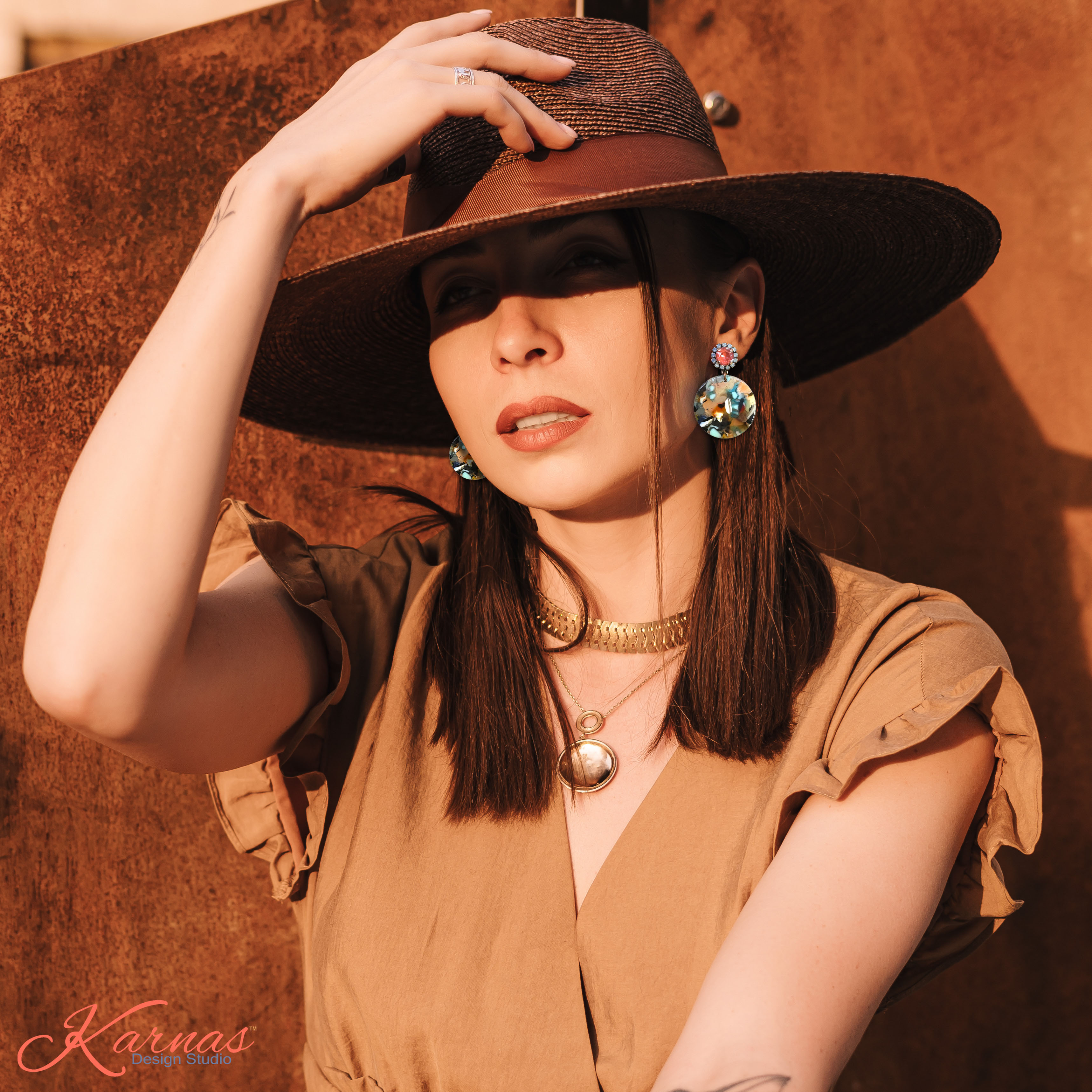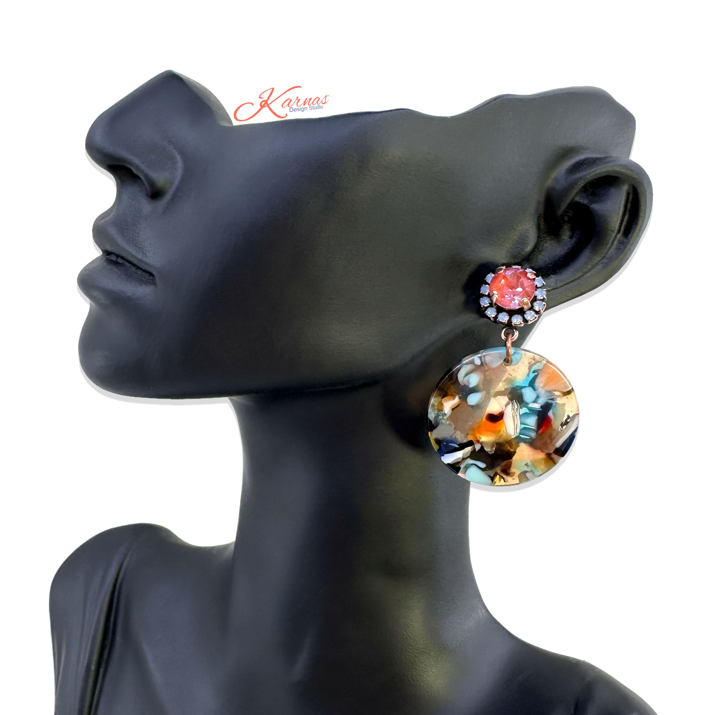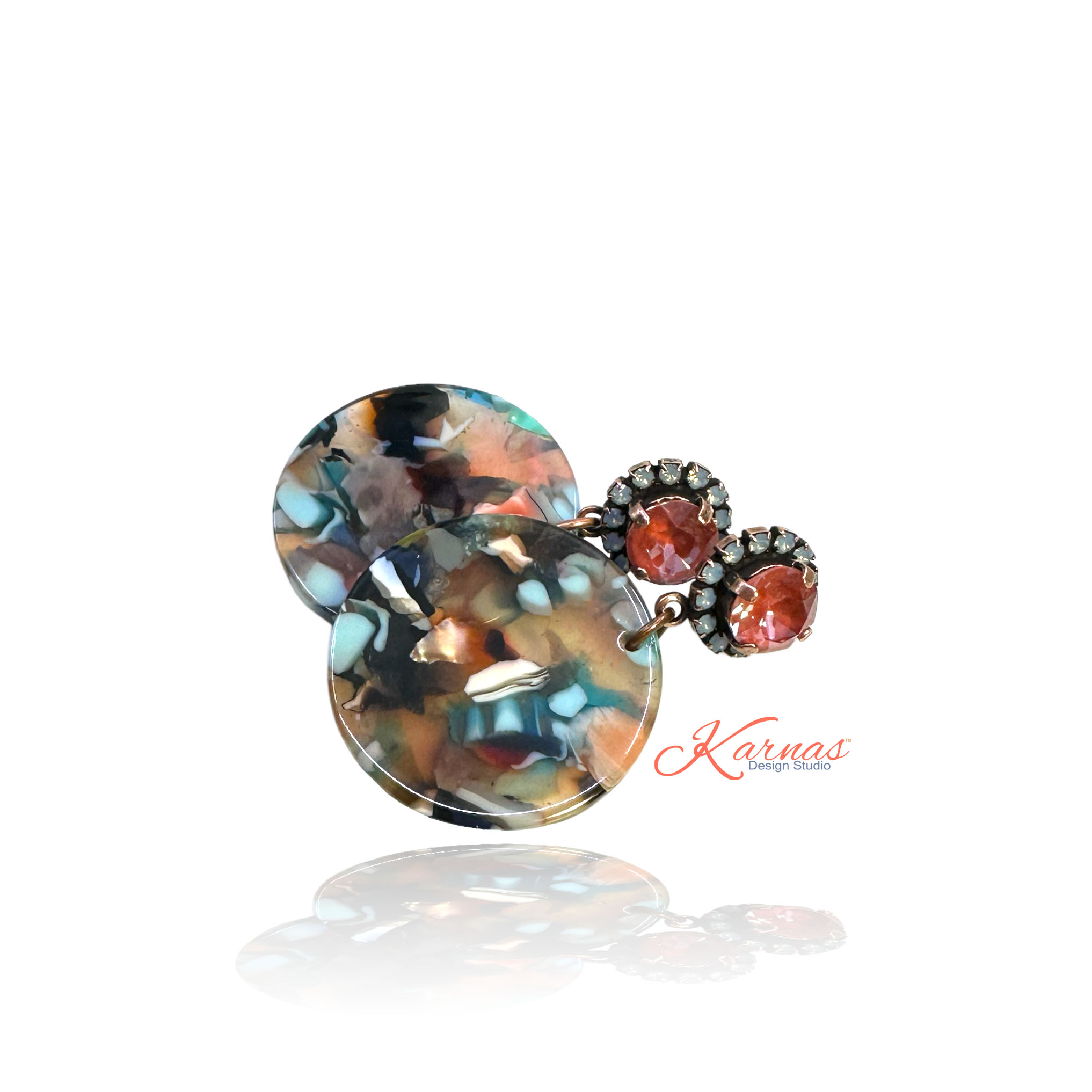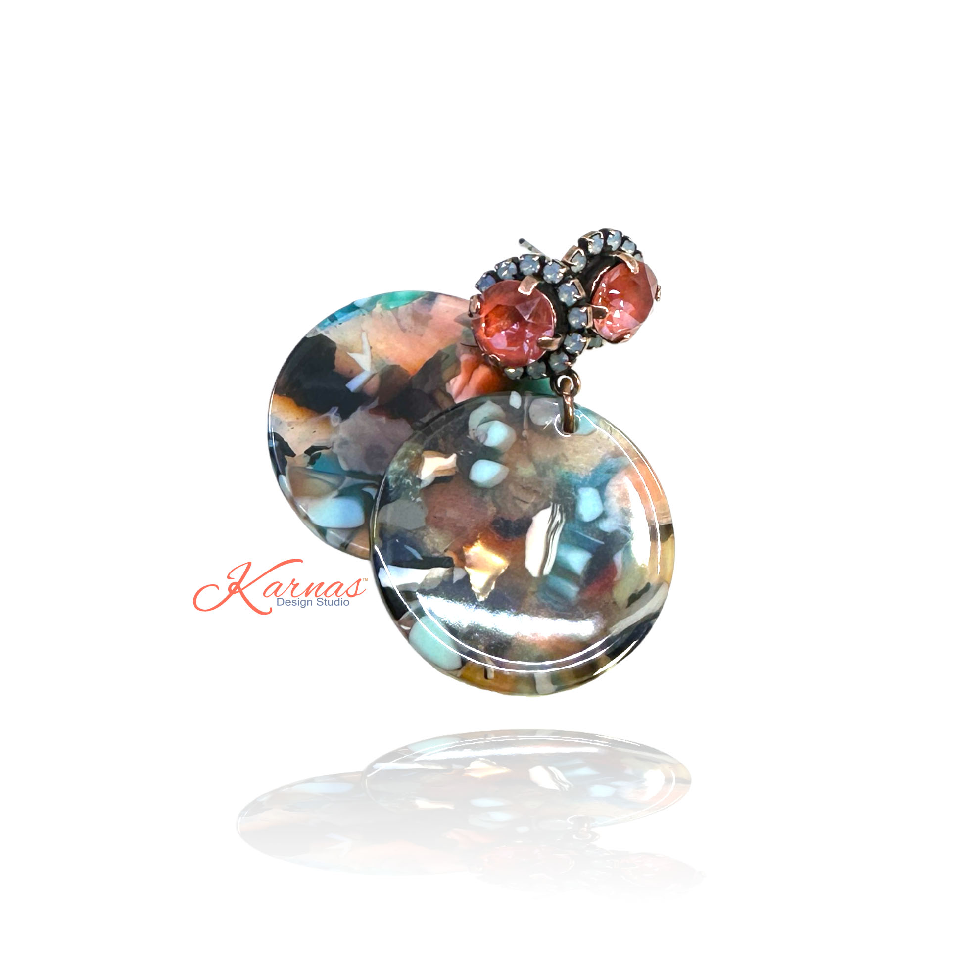 8mm or .31″ diameter genuine Austrian crystal and 30mm acrylic tortoise shell pendants
