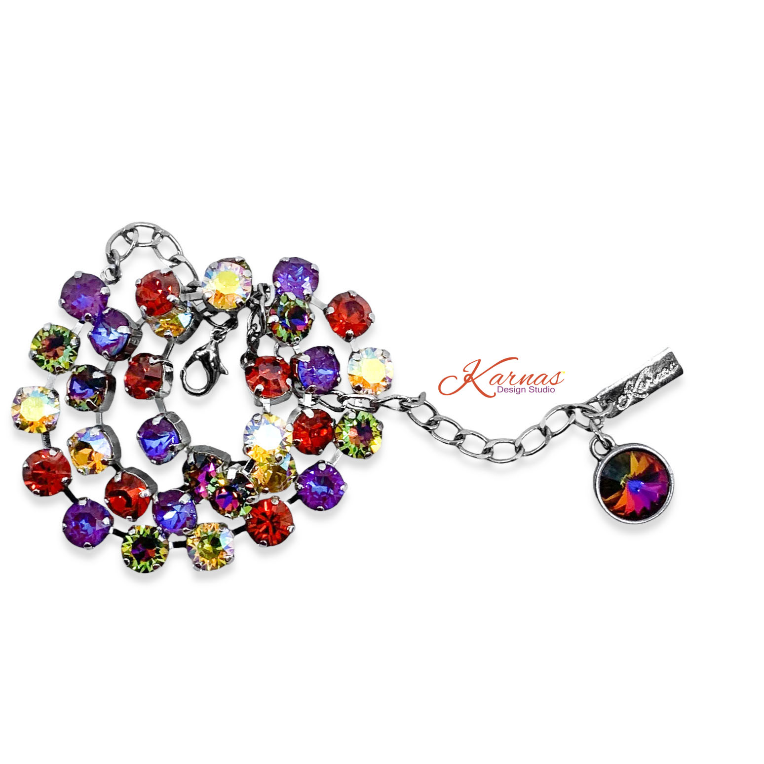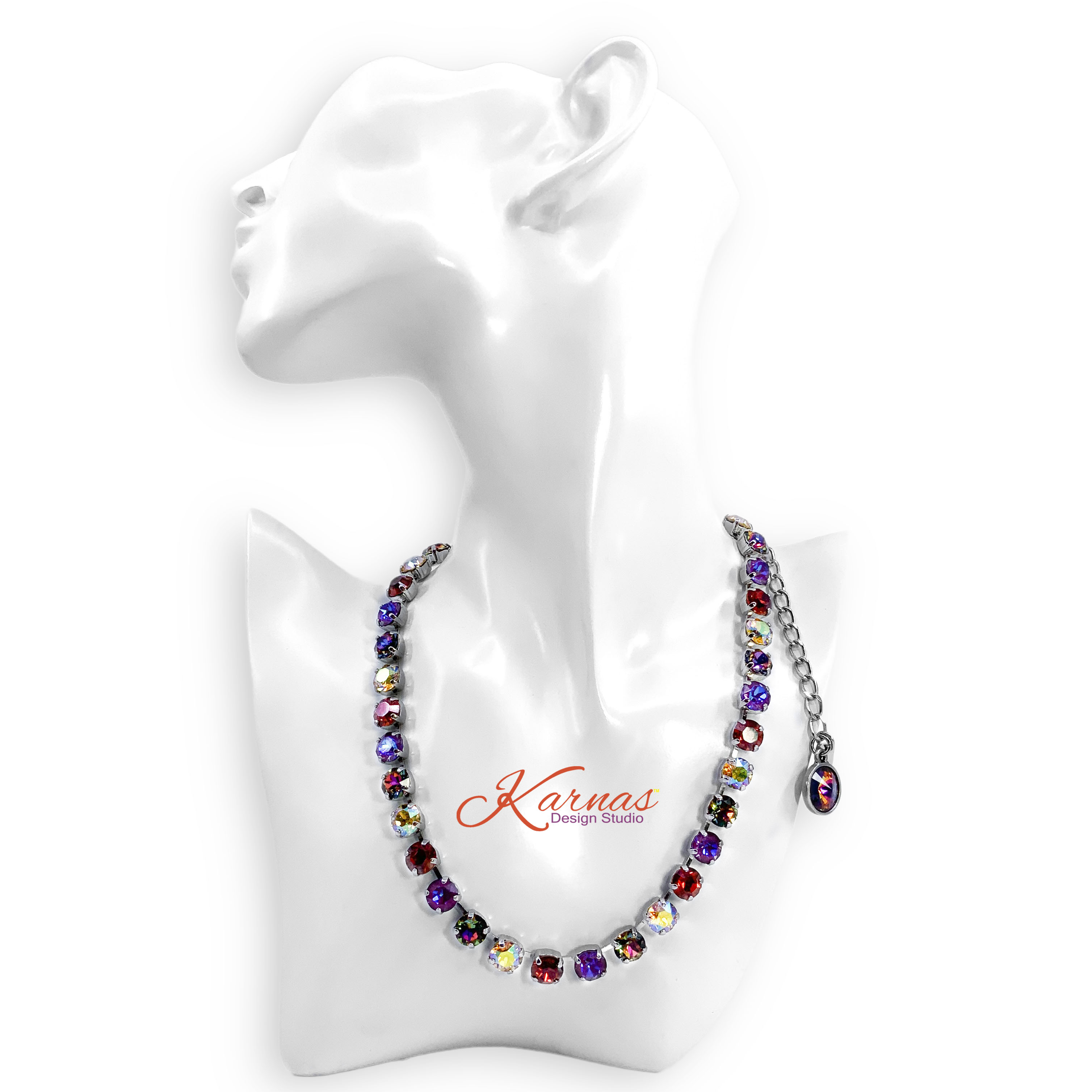 Finish shown in photos is Rhodium. The standard length is 14.5-19″ usable length (approximately, each piece is unique).