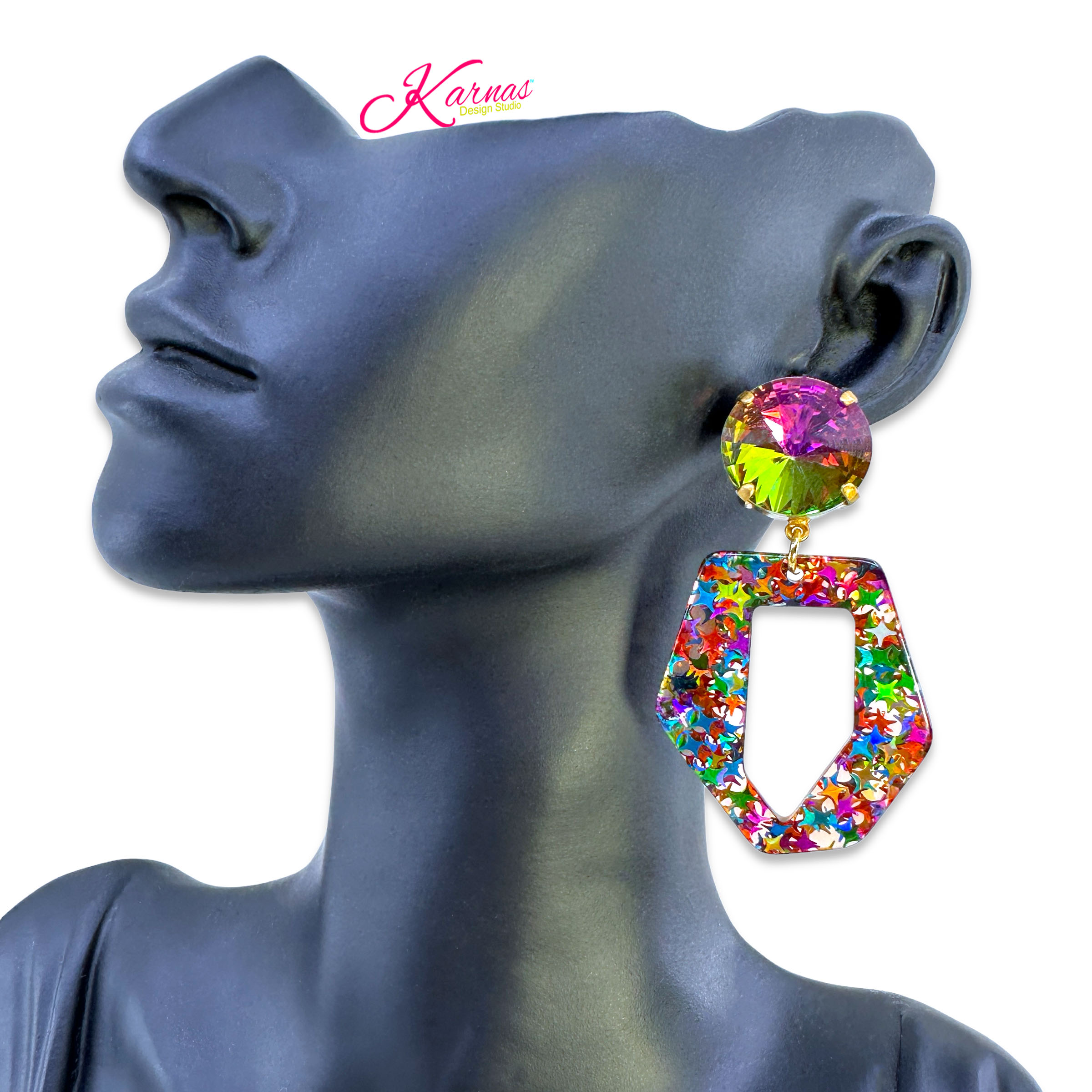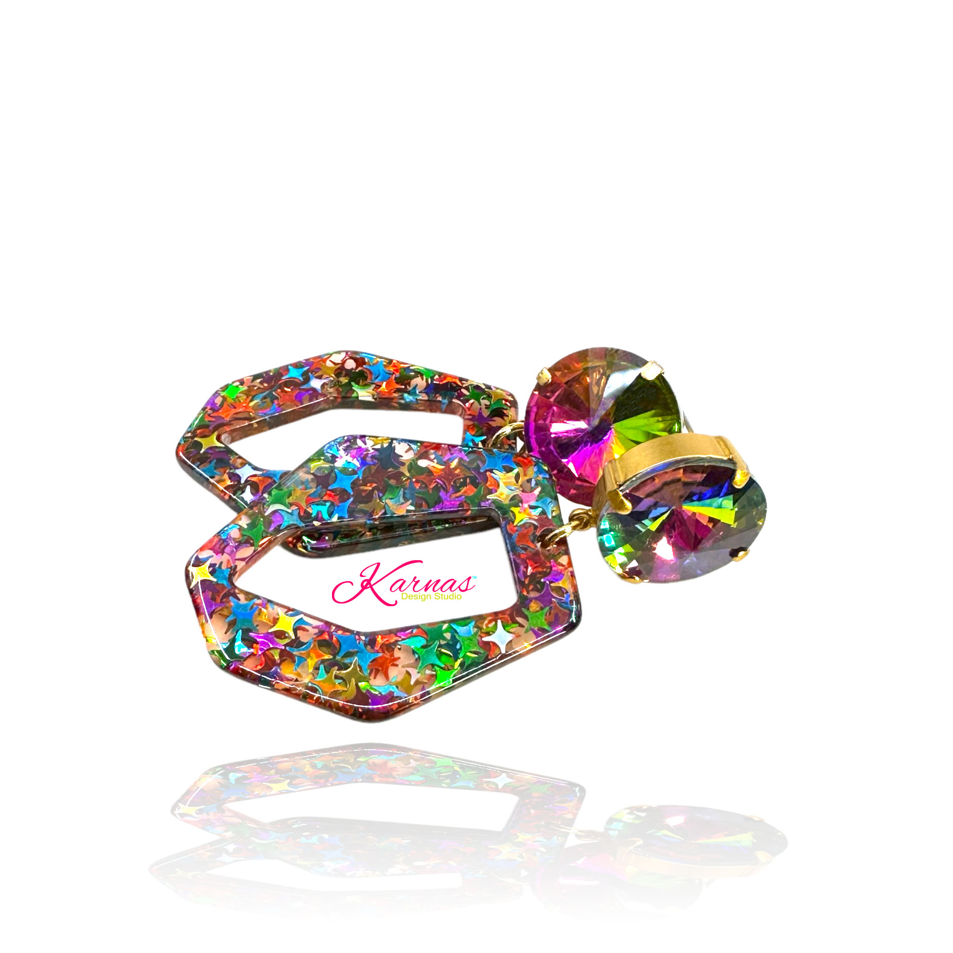18mm or .71″ diameter genuine crystal and 42mm acrylic metallic star pendants