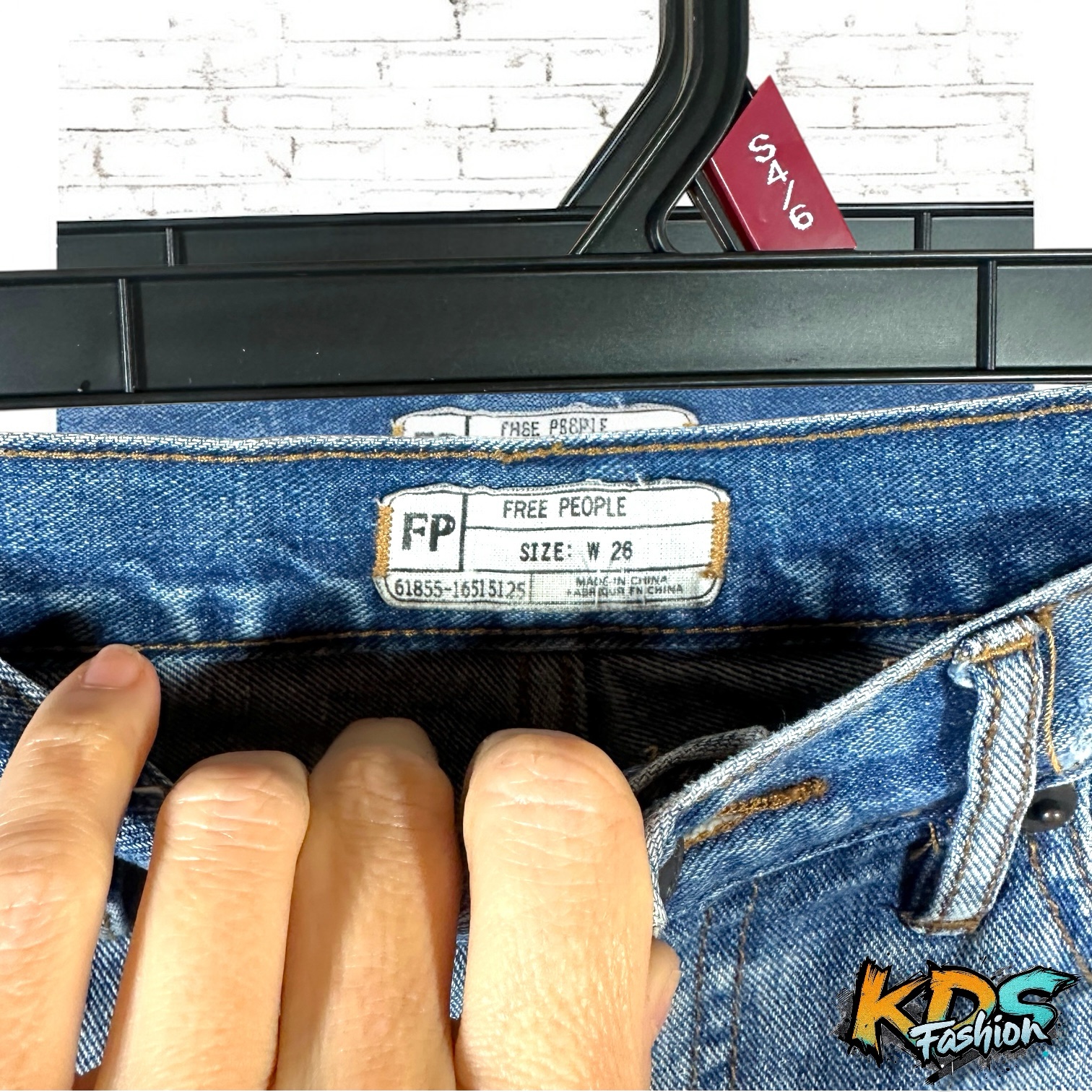 Embrace a laid-back vibe with these Free People blue jean shorts, featuring a distressed cut-off style and a raw, frayed hem.