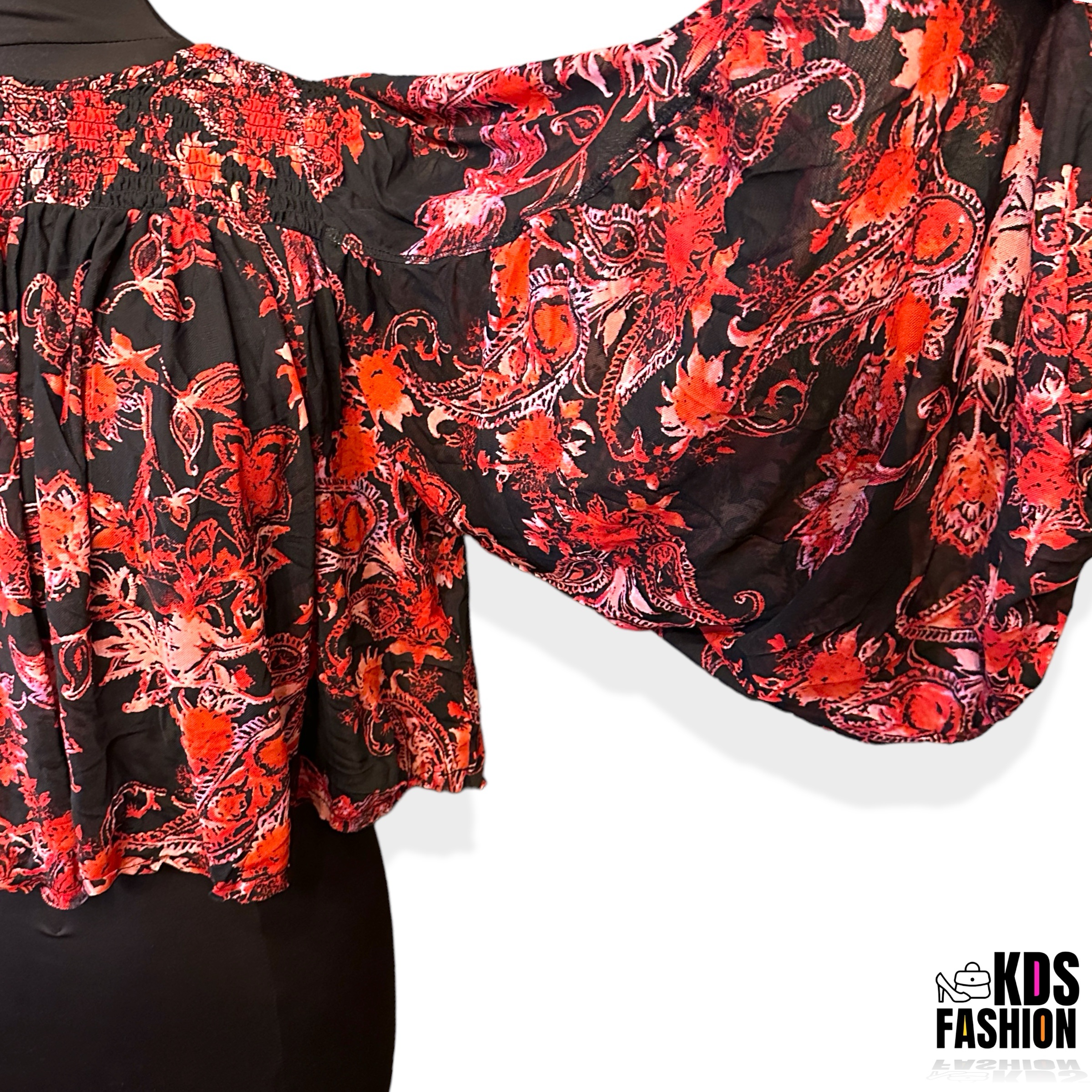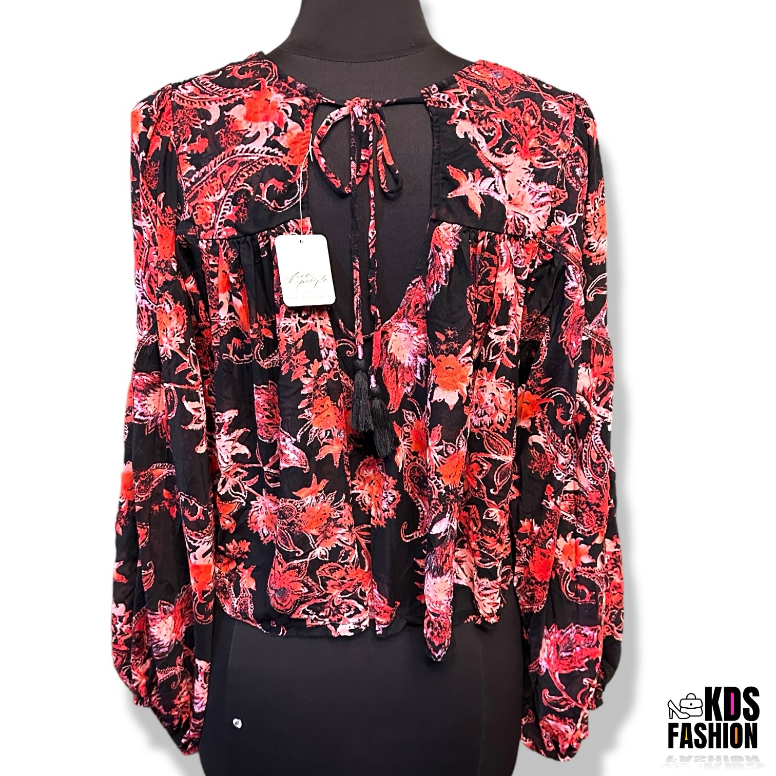 New with tags. Retail $78. This top is light and flowy with large exaggerated sleeves. Ties in back with tassels. 29” chest and 19” length. Slightly sheer with lots of stretch. A truly unique and beautiful piece.