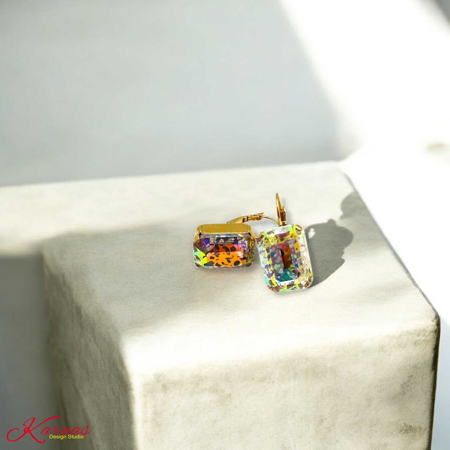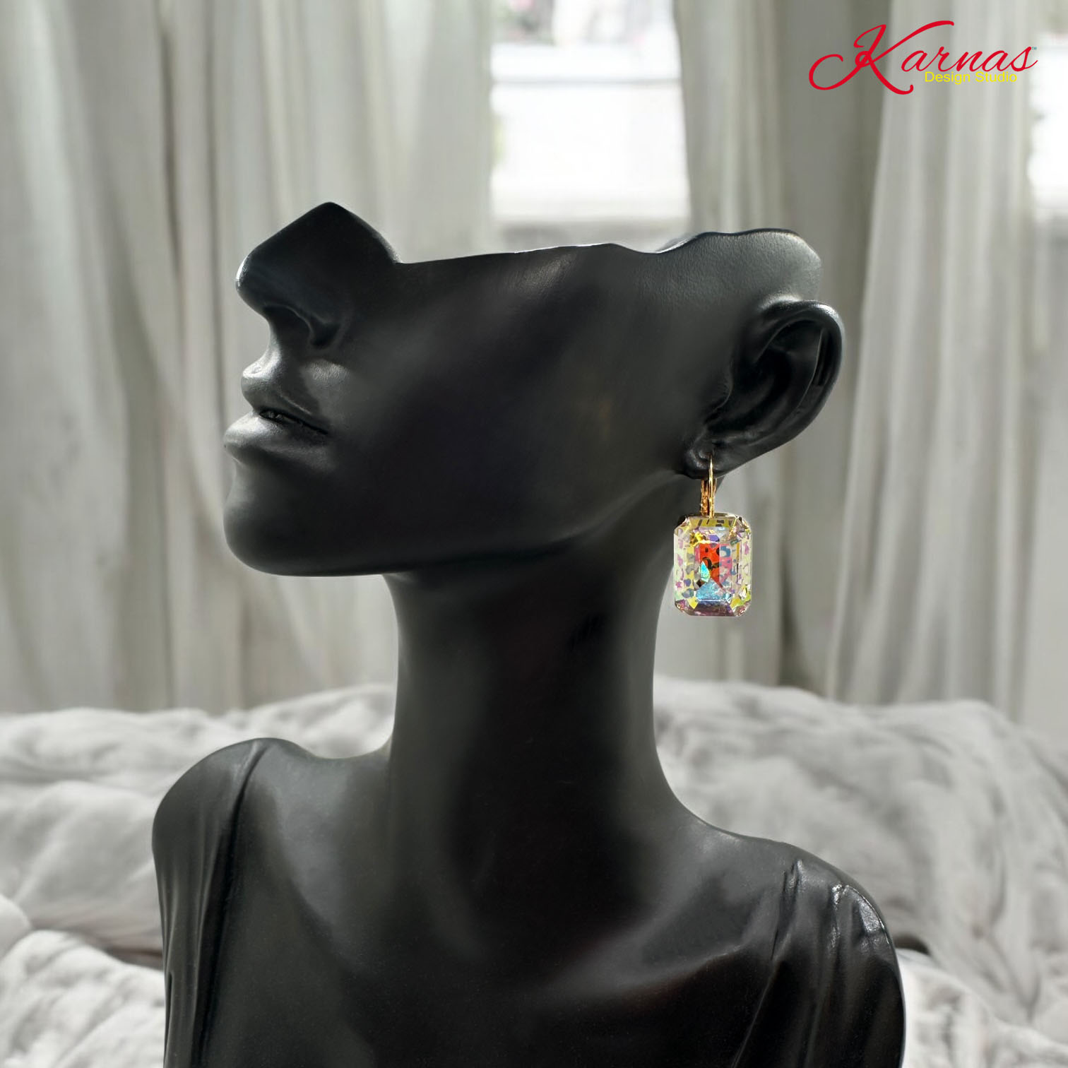 This crystal captures what we think looks like oil floating on water. With of yellow, blue, green, pink and some iridescent touches, this ALL clear crystal provides a unique and one-of-a-kind pattern on top when hit directly with bright light!