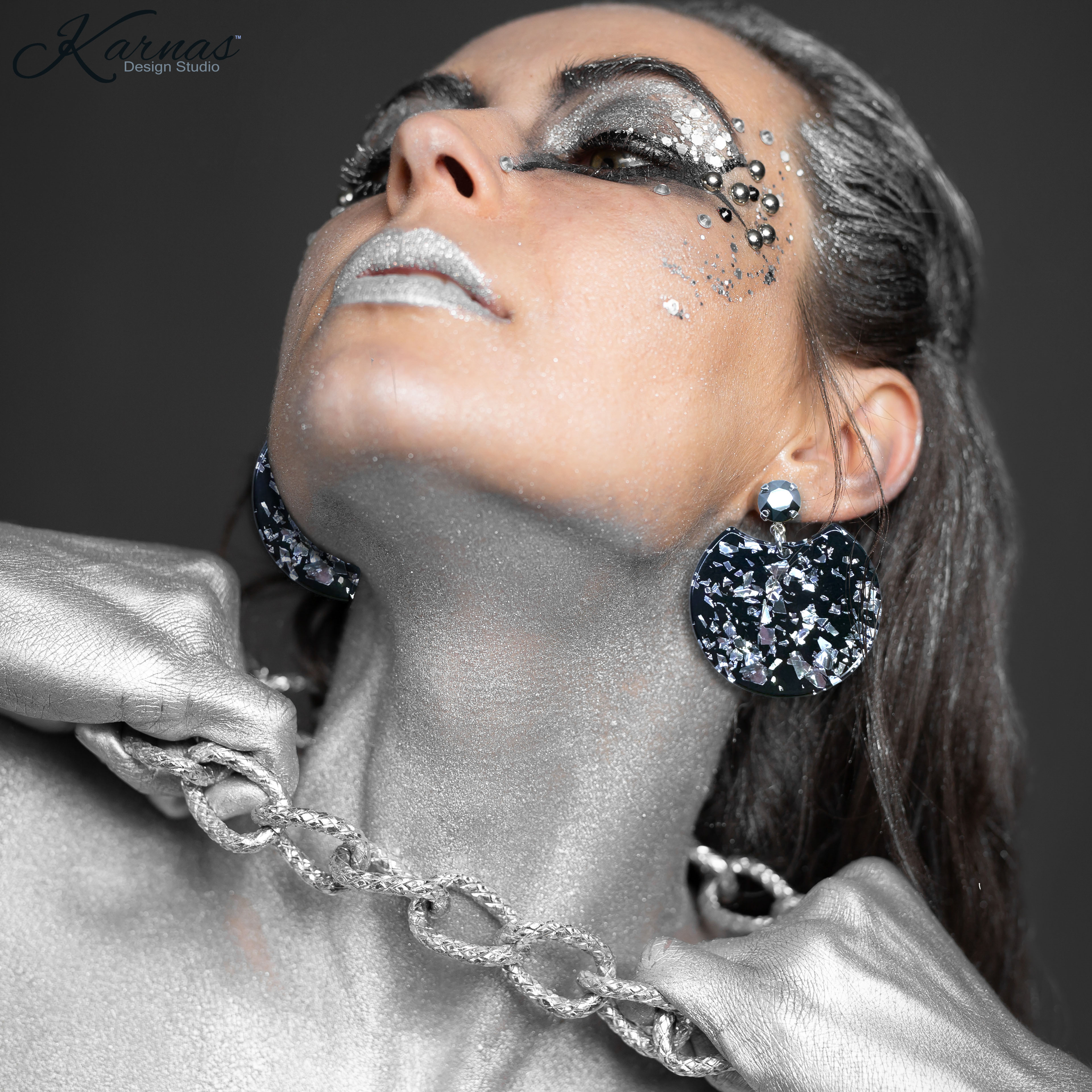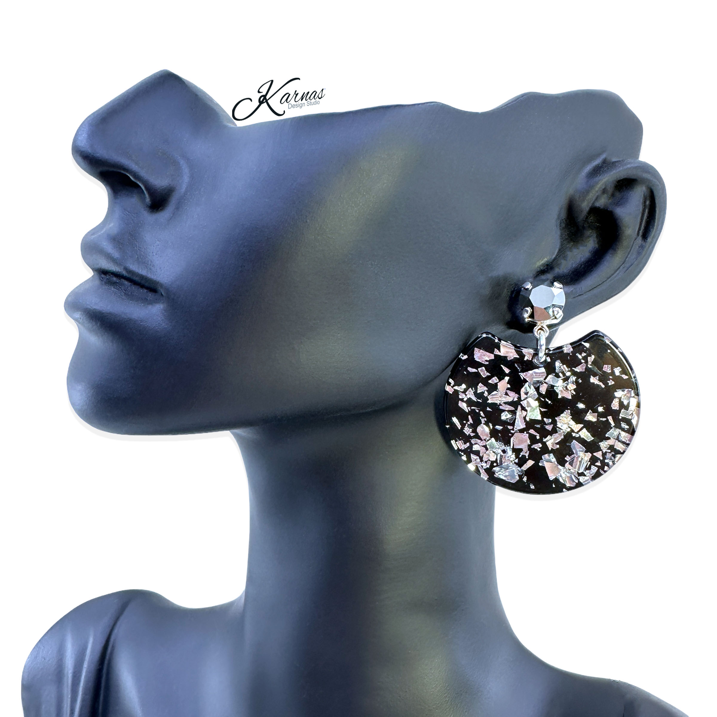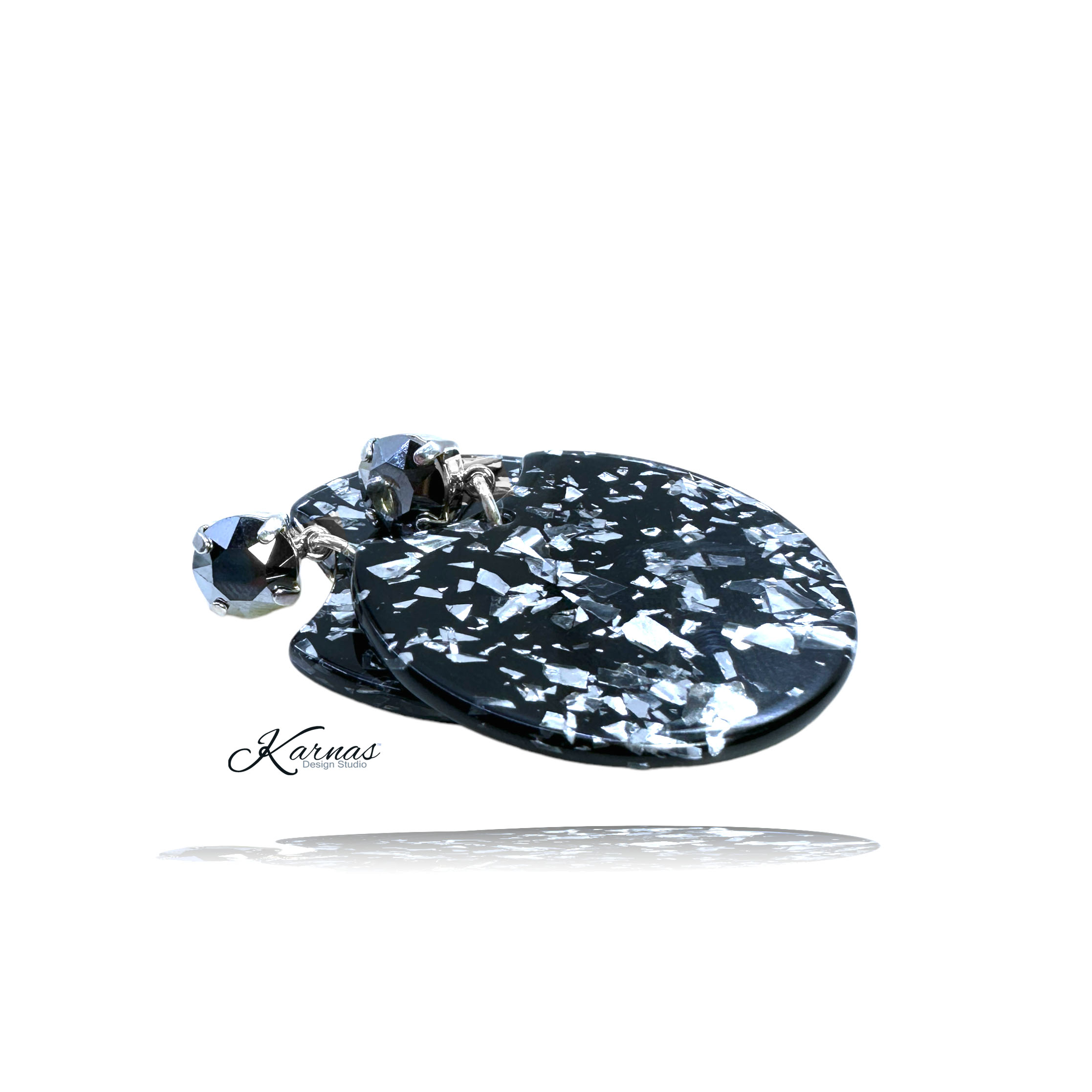 8mm or .31″ diameter genuine Austrian crystal and 36mm acrylic silver flake pendants