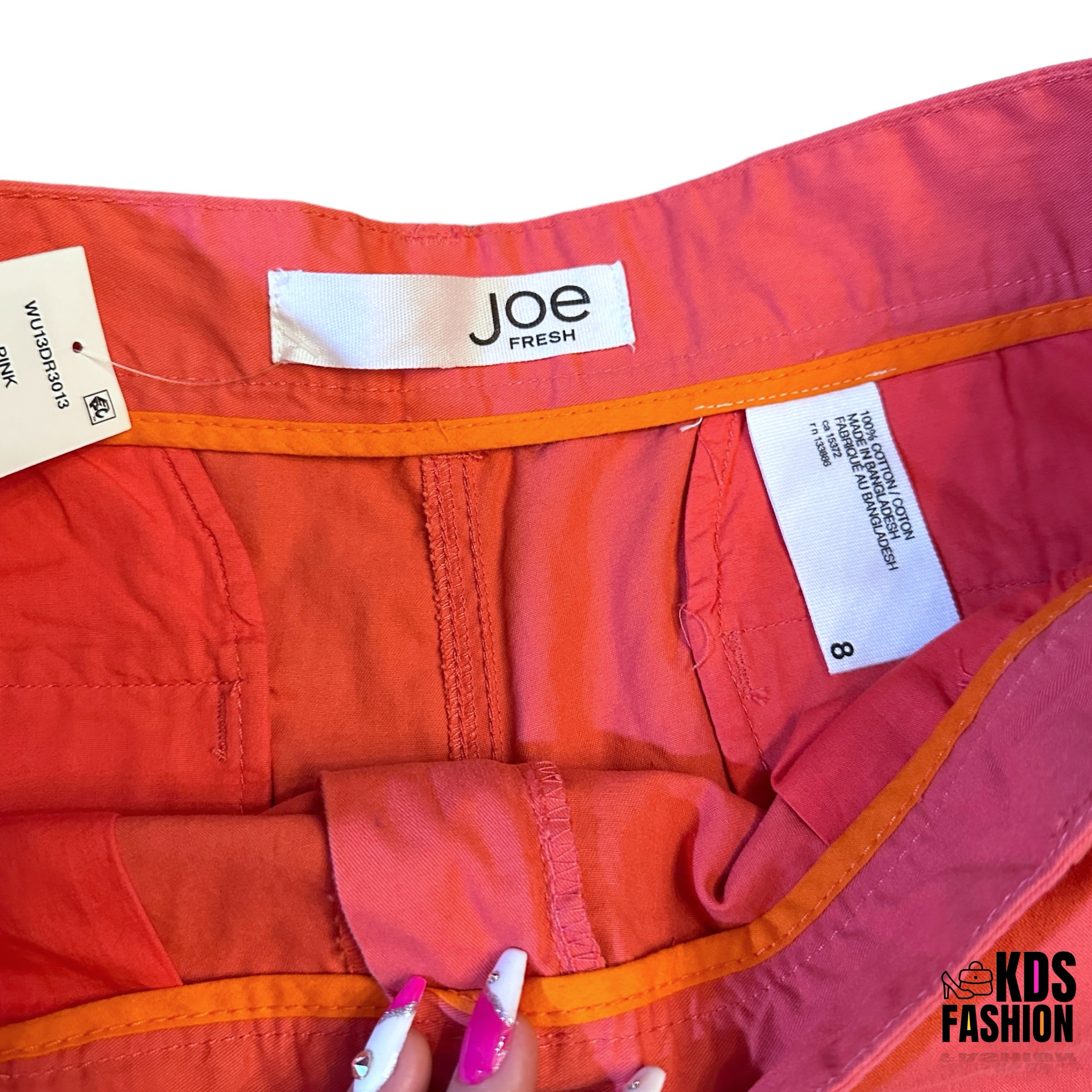 These Joe Fresh Coral Chino Shorts NWT 8 are brand new with tags and perfect for spring and summer. The bright and cheerful coral color will add a pop of color to your wardrobe. They feature a button and zip front closure and have a rise of 10”, waist of 17″, and 3″ inseam. Store tag says small, but that is equal to their brand size 8 which is on the shorts inside tag. Please review measurements to ensure the perfect fit.