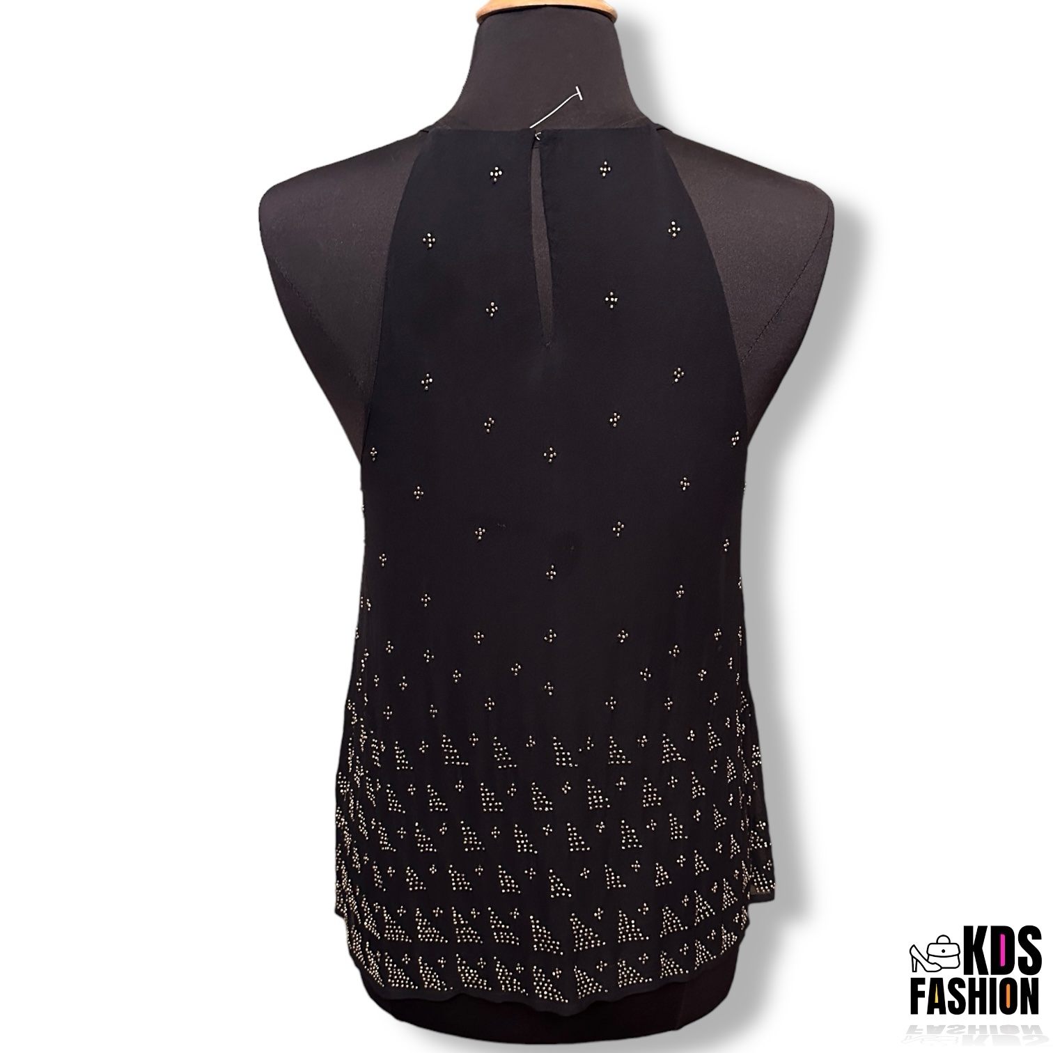 Step out in style with the JOIE Silk Gold Beaded Camisole Tank LG. This stunning black and antiqued gold tank is made from 100% silk and features intricate bead detailing. With a 19” bust and 27” length, this tank is perfect for a night out on the town or a special event. It has just been stored and is in need of a home. Don’t miss out on this great opportunity to add a touch of elegance to your wardrobe!
