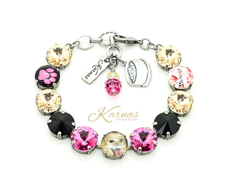 Each KDS Custom Photo Bracelet is thoughtfully designed and handcrafted in our Pennsylvania studio using our signature 12 mm crystal settings. Every piece features stunning, high-quality cabochons that illuminate your cherished photo with exceptional clarity and brilliance — paired with genuine crystals and complementary artistic elements for a one-of-a-kind keepsake made just for you.