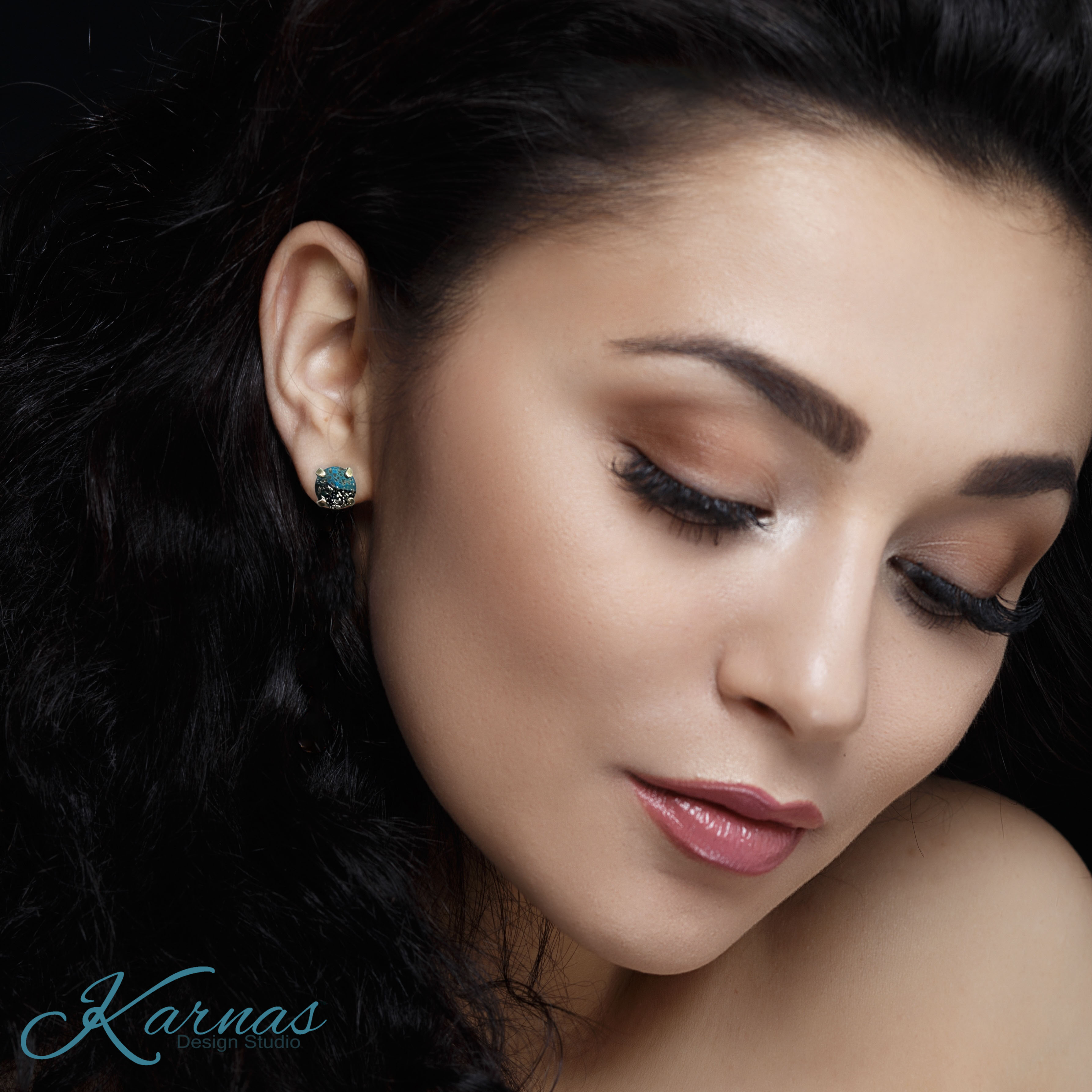 The finish shown is the Antique Silver in a stud style earring. Please see the drop down menu for additional options (if available).