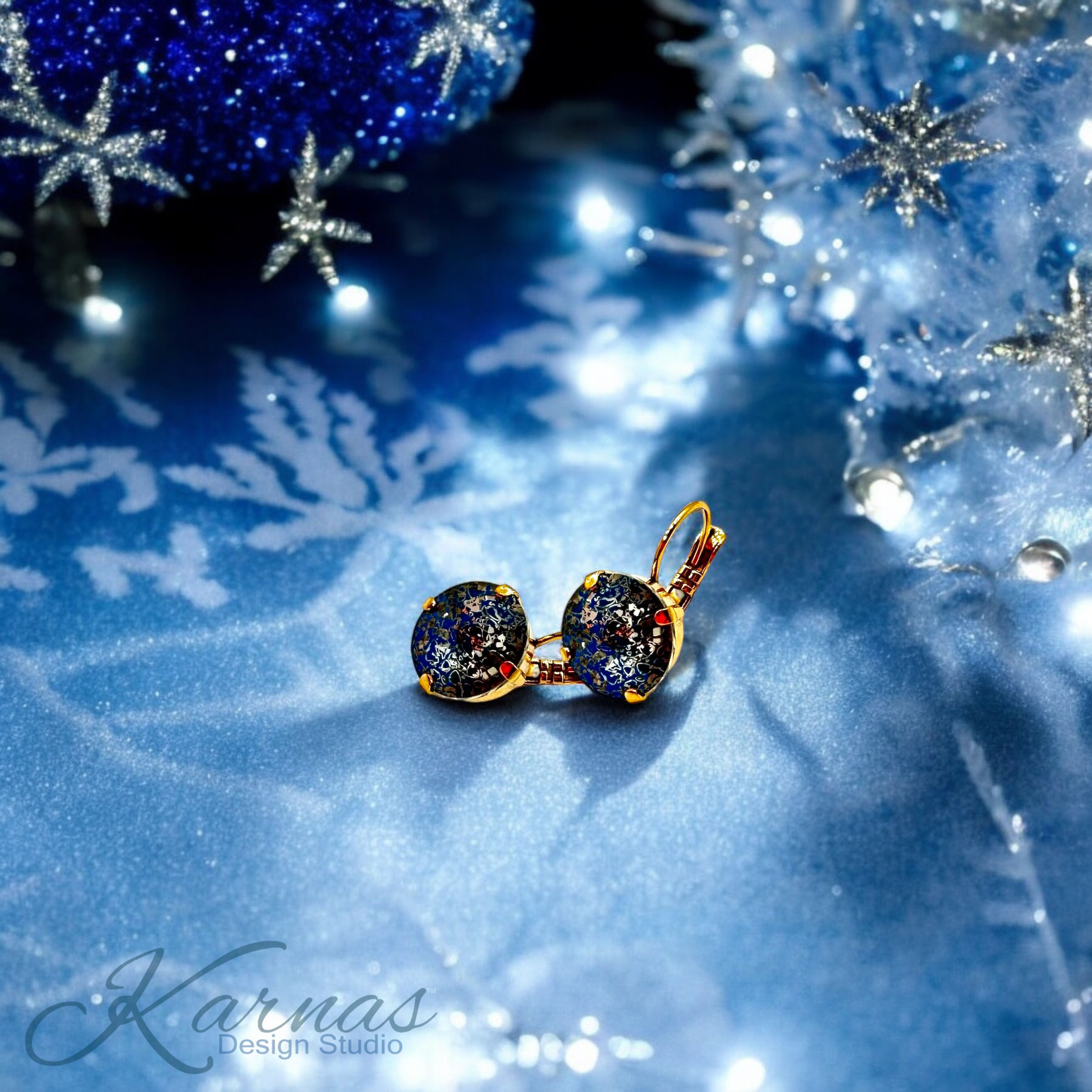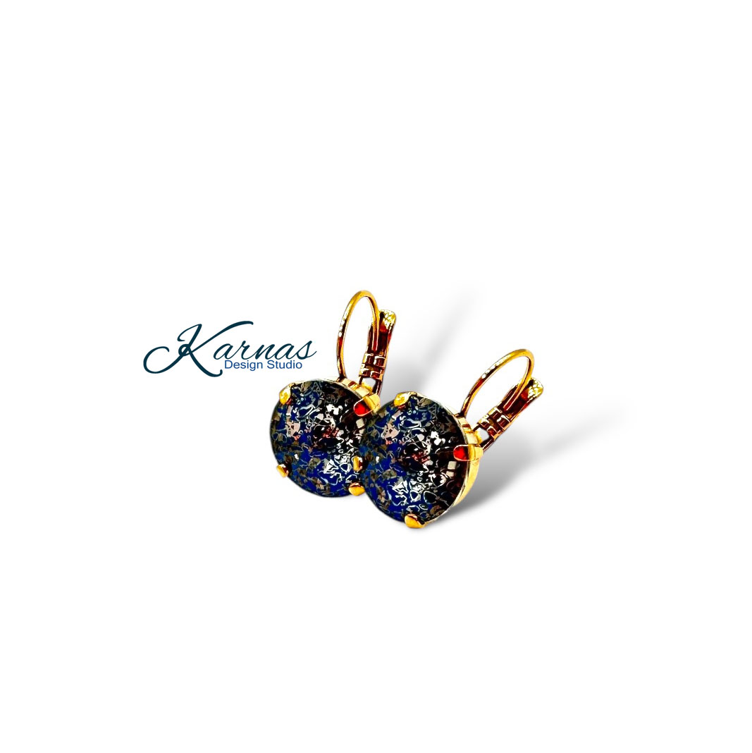 A deep, vivid, and intense shade of blue which is done in a patina over top of a clear crystal base.