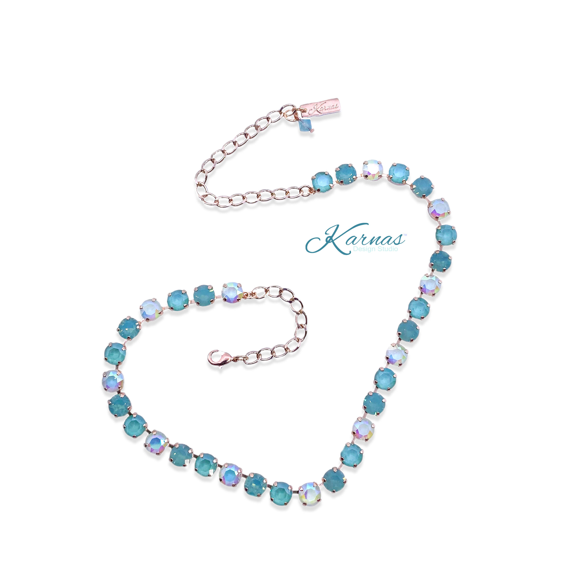Finish shown in photos is Rose Gold. The standard length is 14.5-19″ usable length (approximately, each piece is unique).