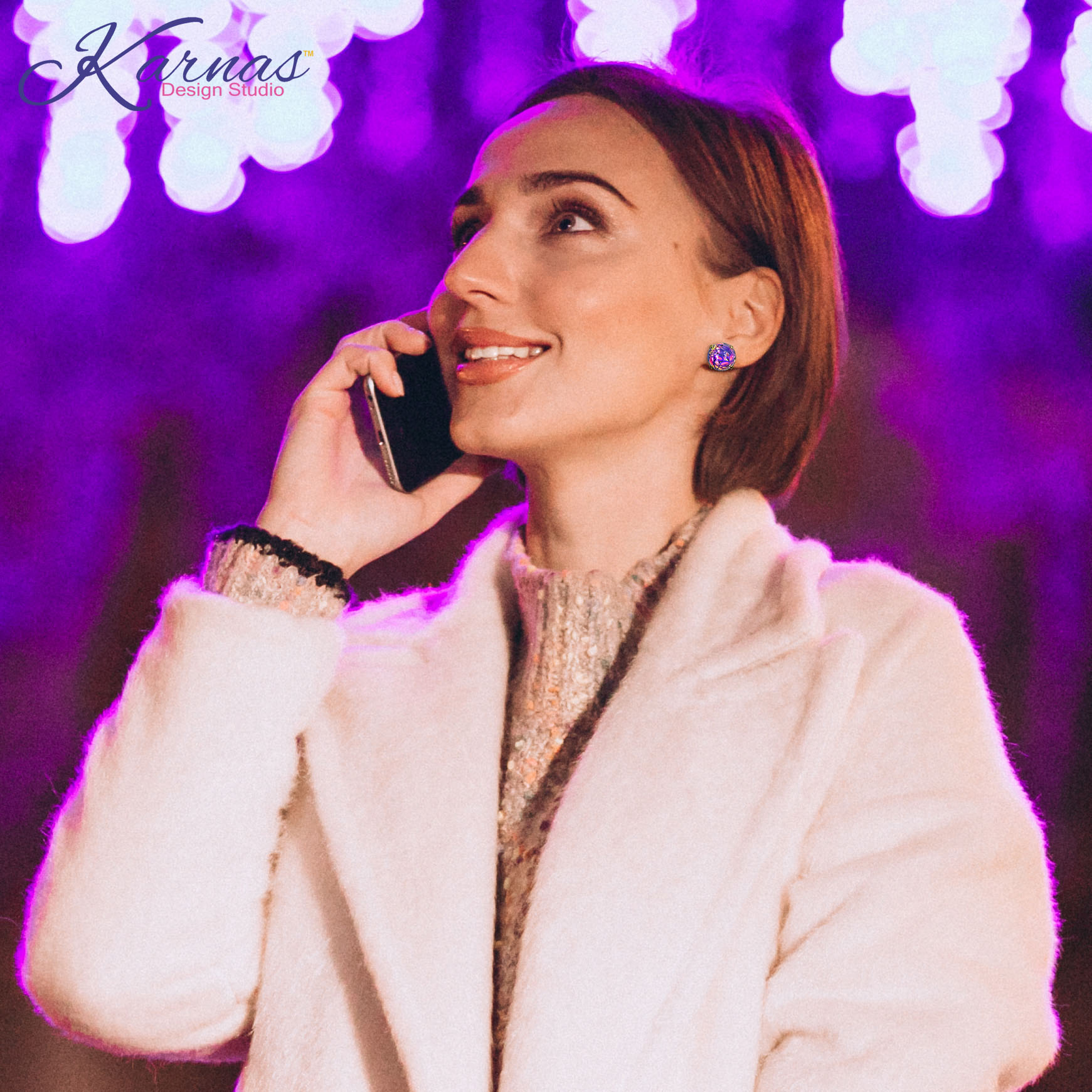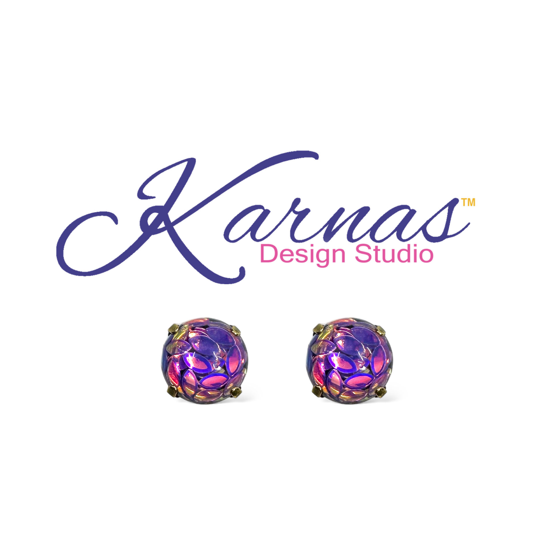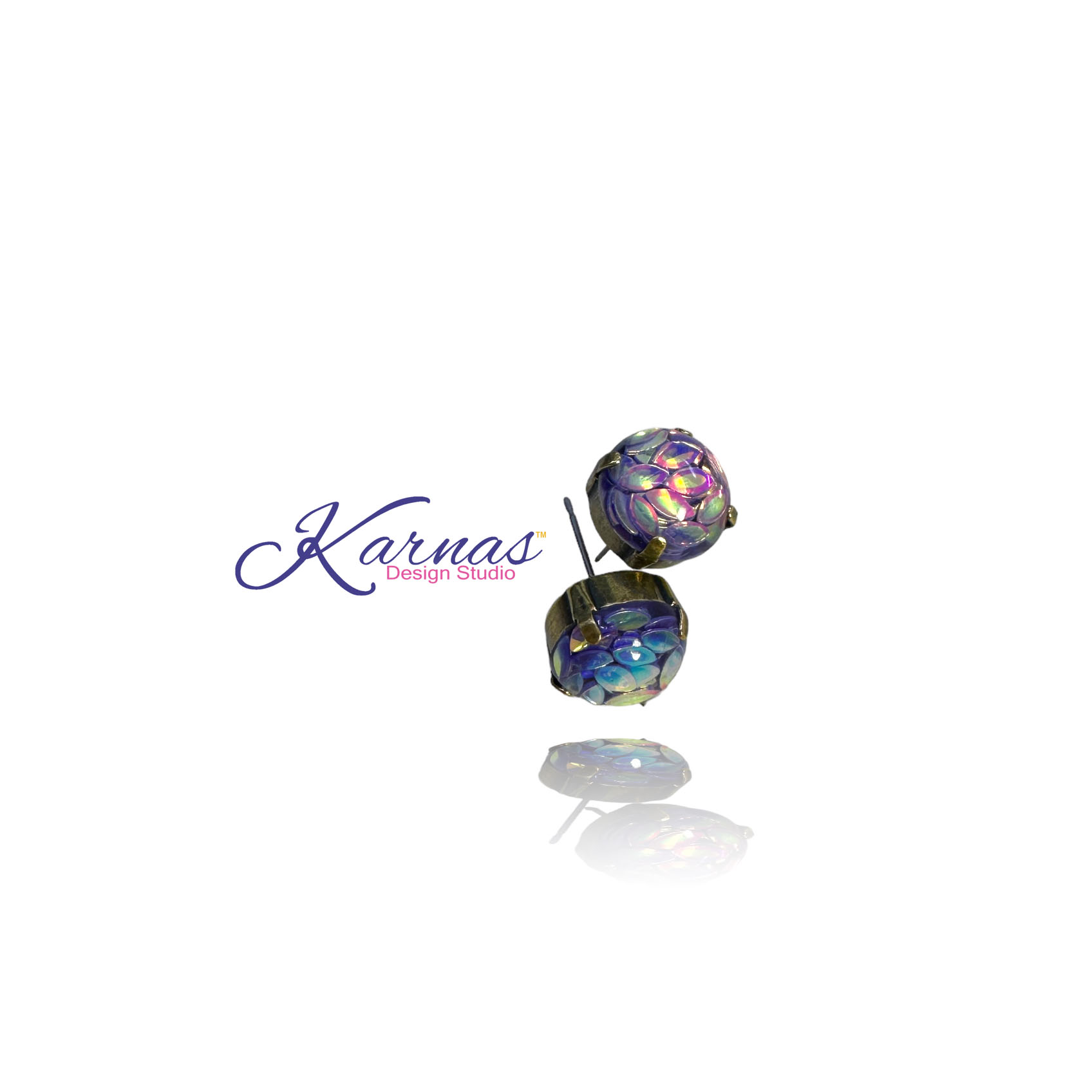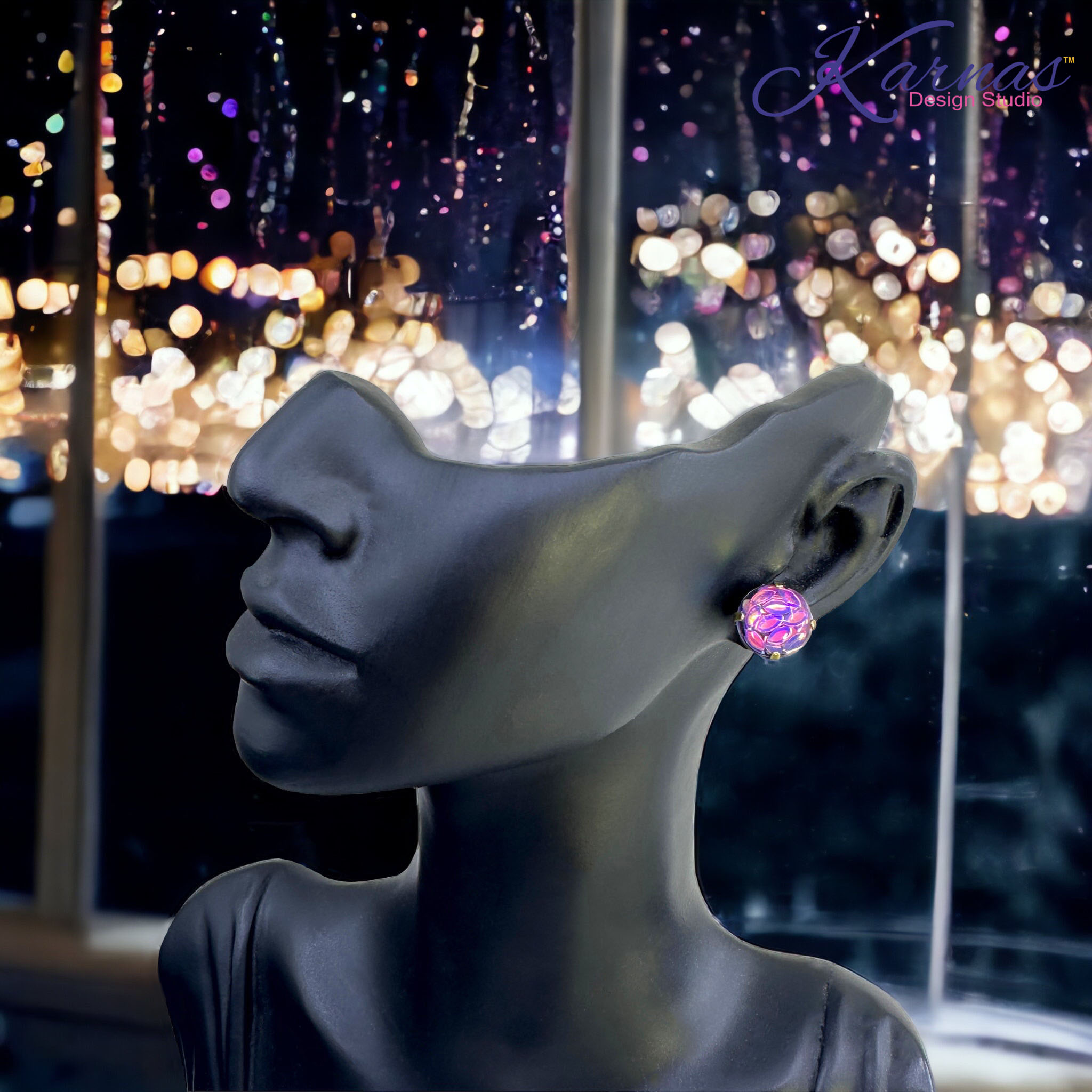 These enchanting earrings are sure to captivate anyone who lays eyes on them! This mesmerizing pattern of pinks, purple, and yellow crystal radiate a mysterious aura.