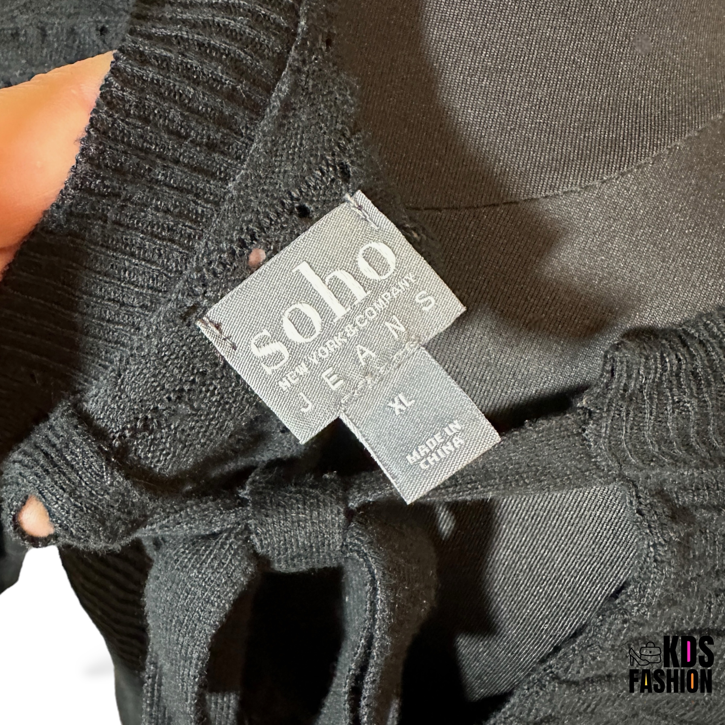 Step into style with this effortlessly chic New York & Company Soho Jeans Bow Back Sweater in US Women’s Extra Large size. This sweater, which retails for $50 and is in excellent condition, features a slouchy, loose fit, 3/4 length sleeves, and a unique bow back design that can be worn on or off the shoulder. With a chest measurement of 25” and a length of 29”, this like-new sweater is the perfect addition to any fashion-forward wardrobe.