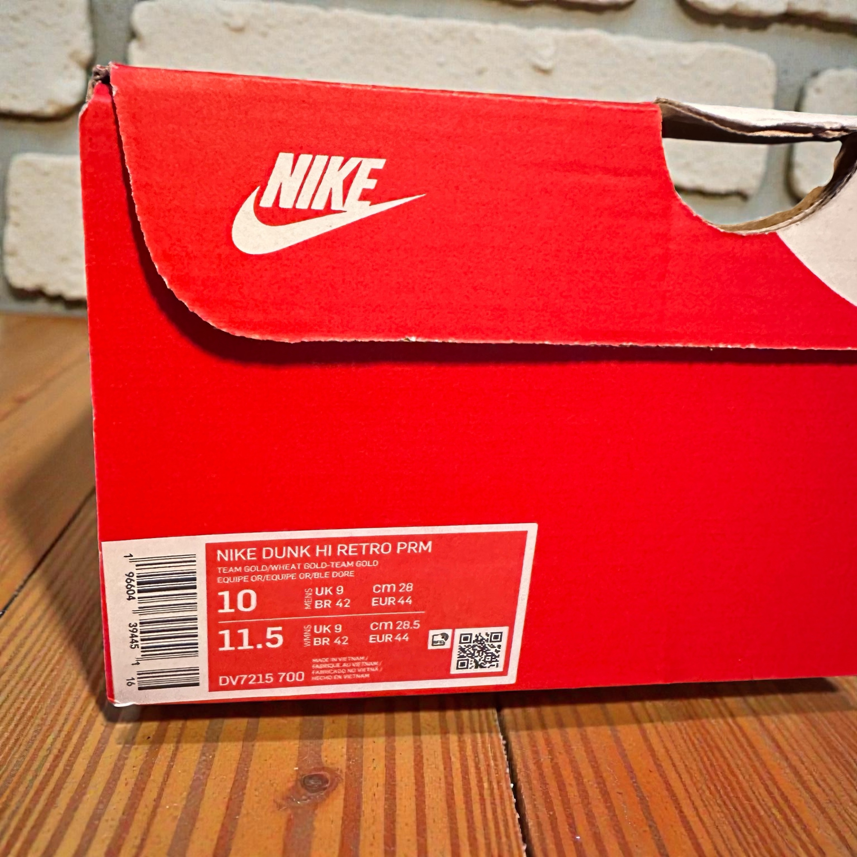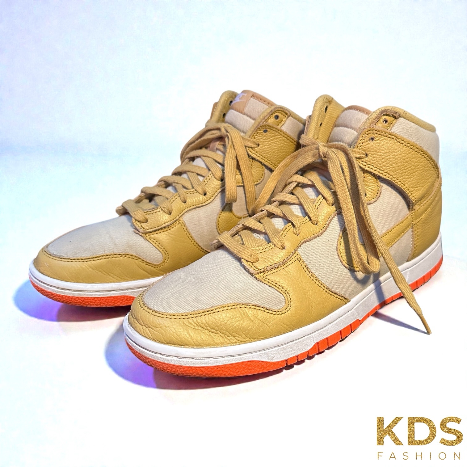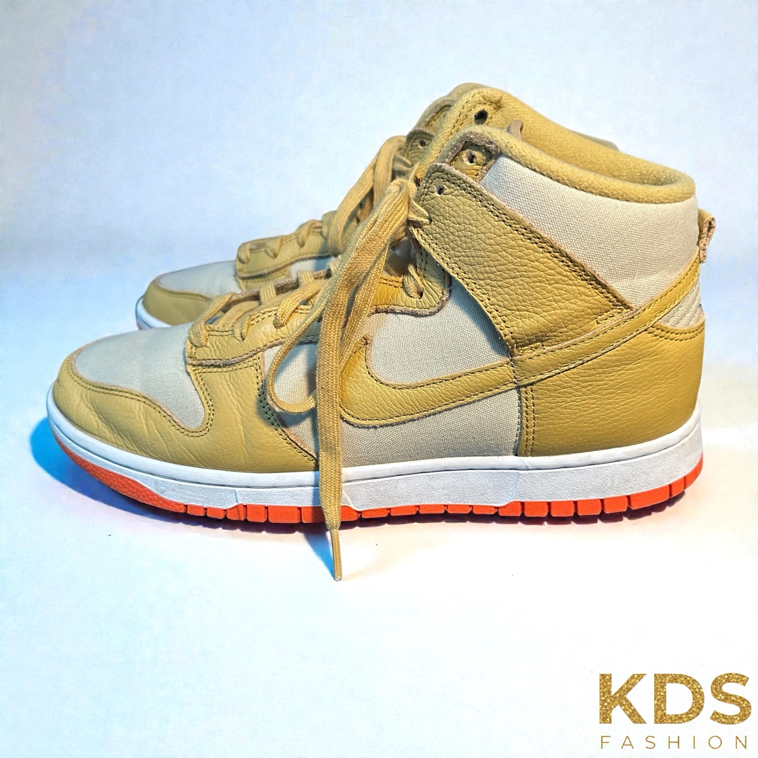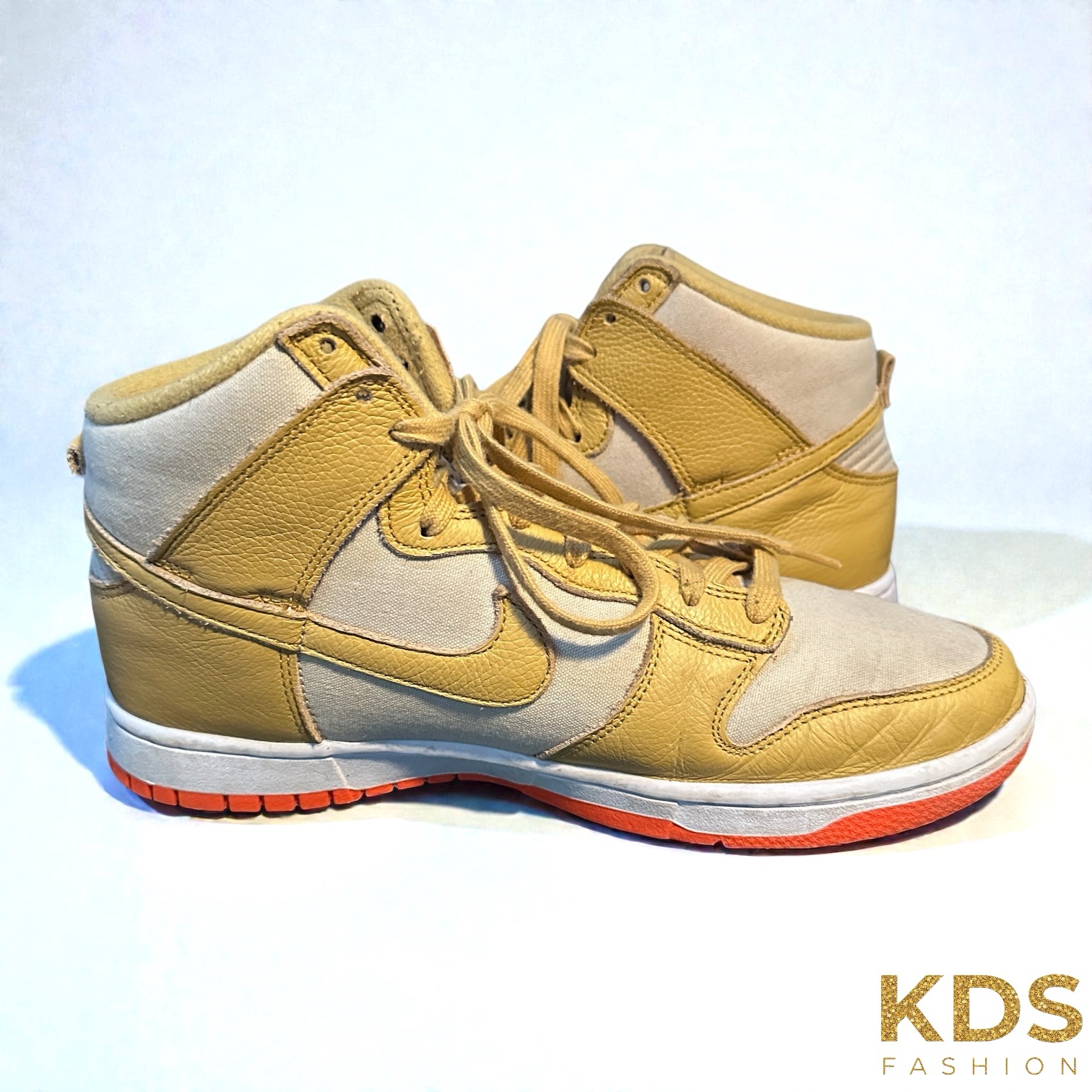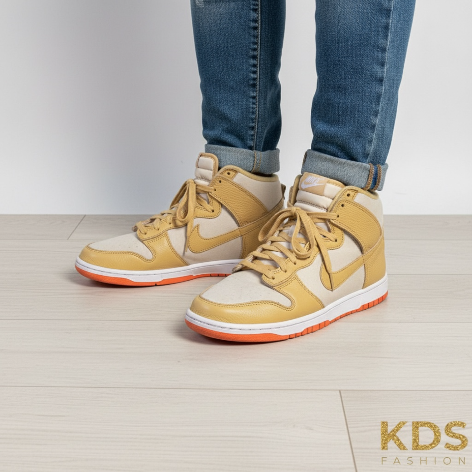 Clean, stylish, and hard to find — these Nike Dunk High Retro PRM sneakers feature the beautiful Team Gold / Wheat Gold colorway with premium materials and classic Dunk High structure.