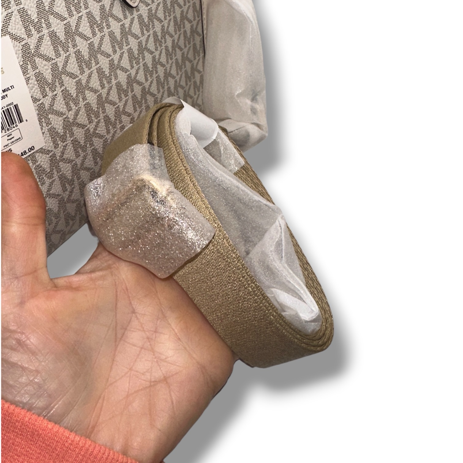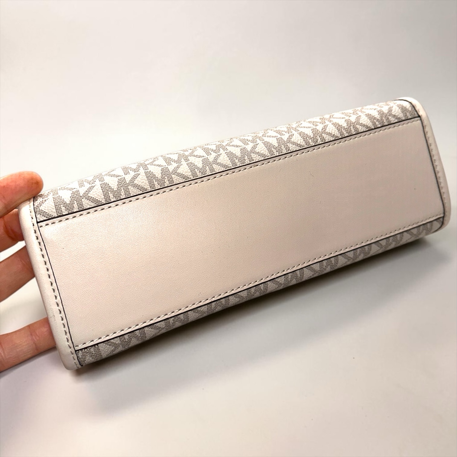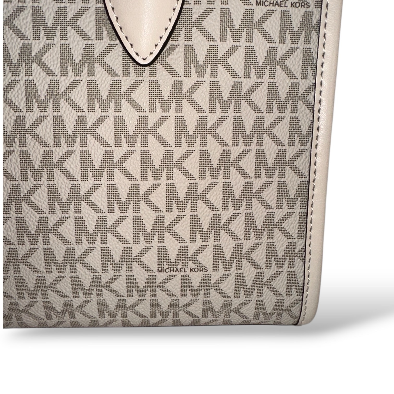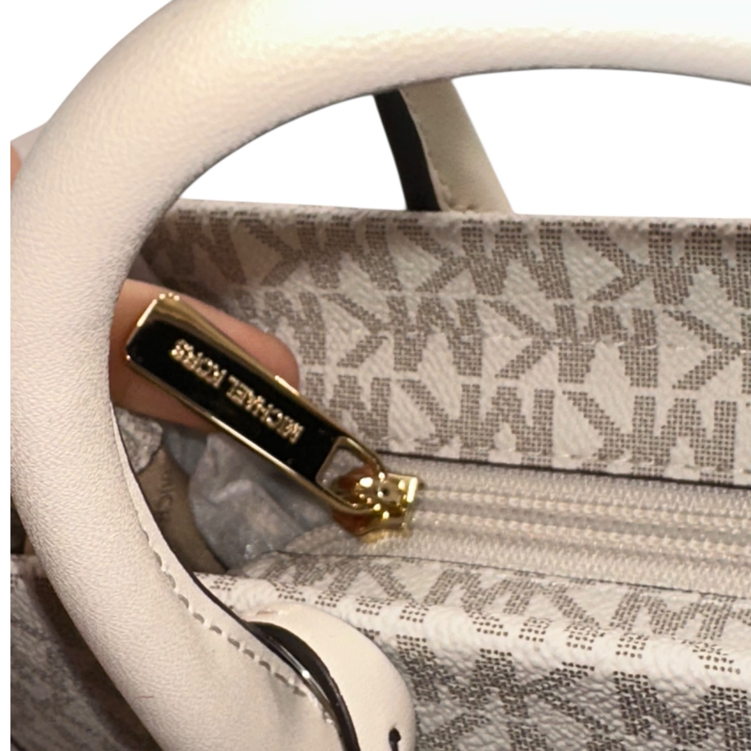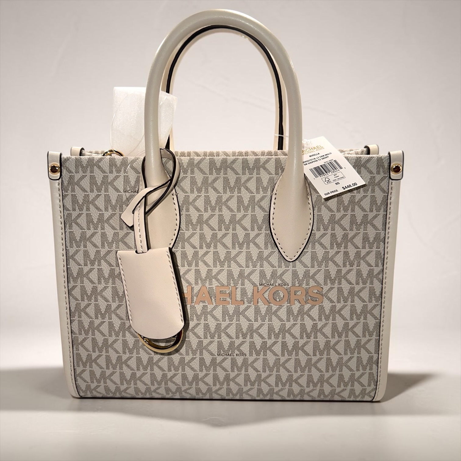 Polished, classic, and easy to wear, this brand new Michael Kors Mirella Small Shopper is the kind of bag that instantly pulls everything together. Designed in the signature MK logo print with light cream trim and gold-tone hardware, it features a structured silhouette, double top handles, and a detachable adjustable crossbody strap for versatile styling. A chic everyday bag that feels elevated without trying too hard.