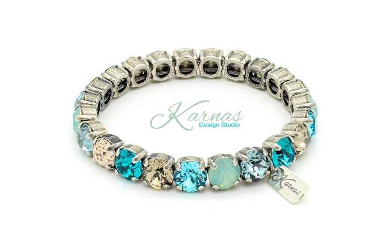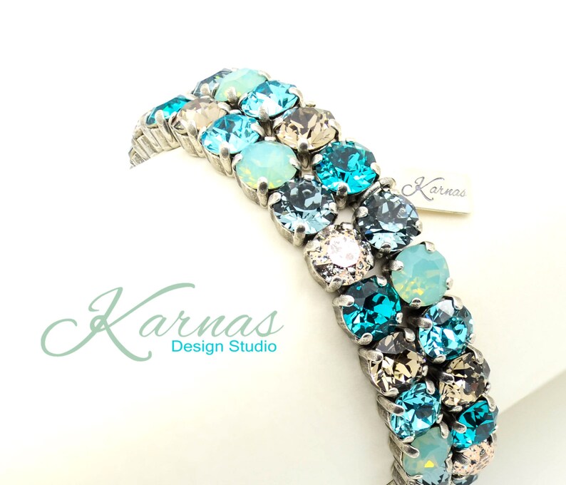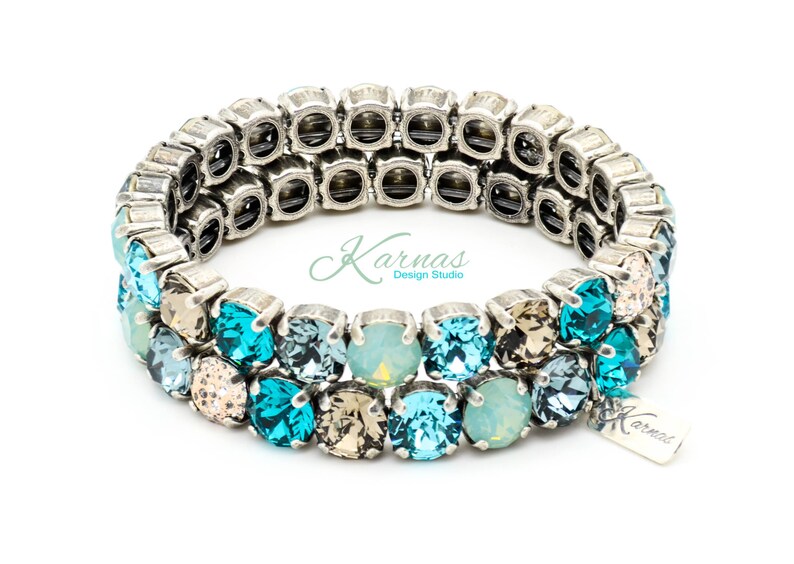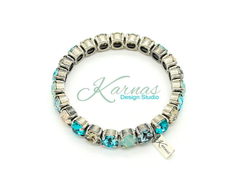 Ride the wave, sparkle the storm.This bracelet mixes ocean blues with stormy metallics for a look that’s calm, cool, and dangerously gorgeous.
