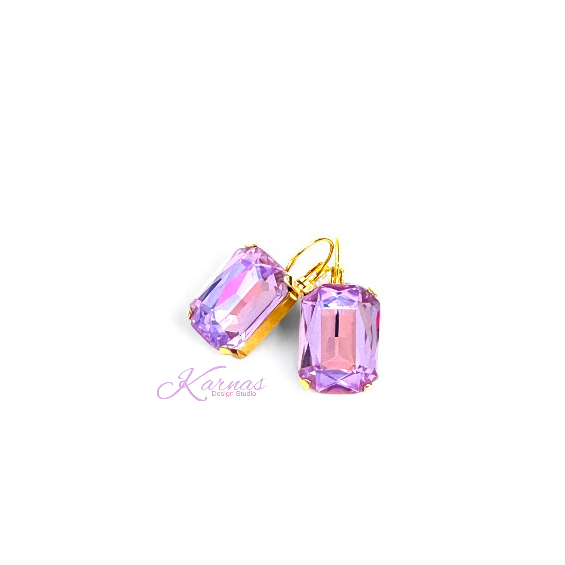 I love all of Kristi’s Emerald Cut Earrings but these Pink Powder Puff ones are my very favorite. The color is stunning and makes a sparkling statement. I’m wearing them today for a party with my new lavender and purple top and I know people will be dazzled by the shades of purple and pink flashing from my earrings. With the Emerald Cut Earrings you see all the facets especially in the light! Kristi is a true creative artist !