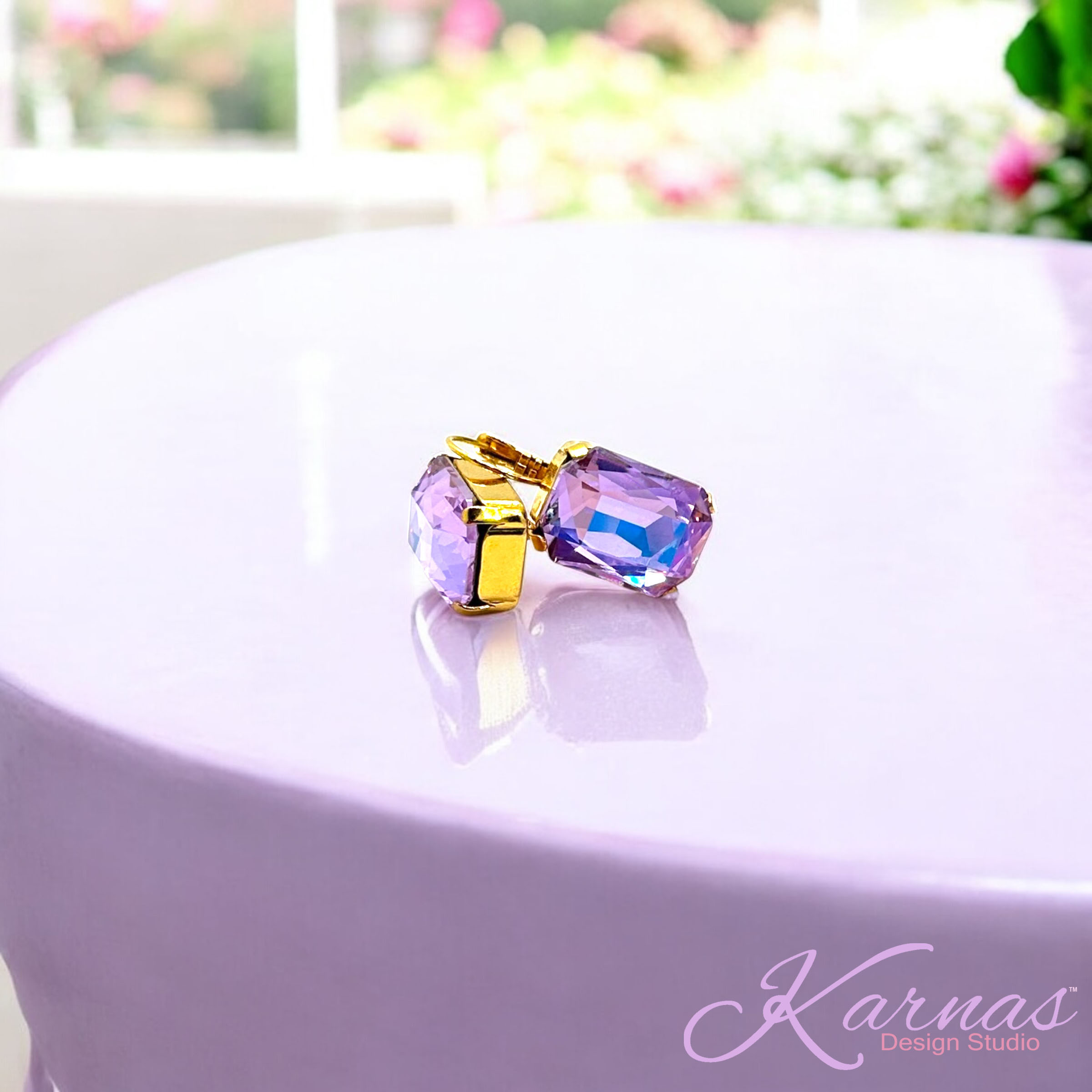 I got these in Rhodium Silver because I have other pink earrings in gold settings. The Rhodium Silver looks good against this gorgeous color. I can’t wait to wear these next and get many compliments on my earrings like I do any time I wear Karnas Design Studio jewelry! Thank you Kristi for making life brighter !