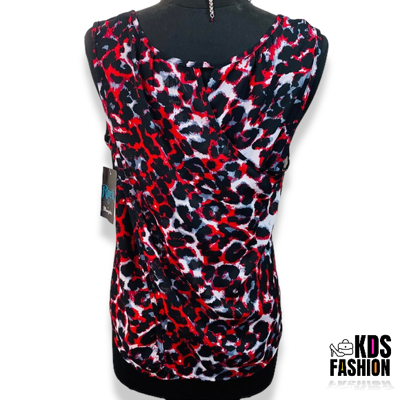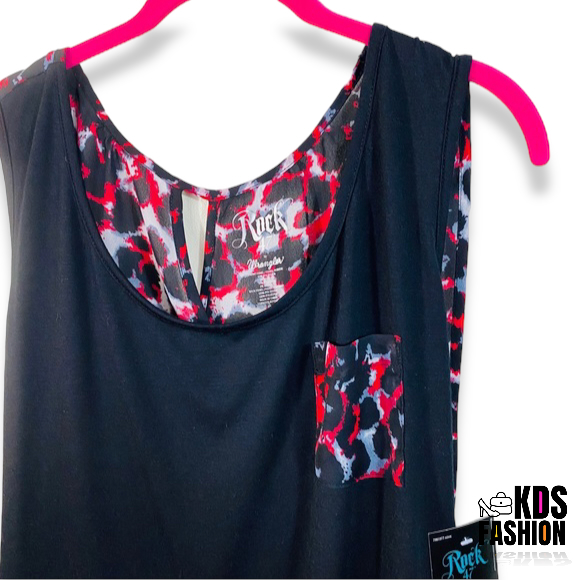 This bold and daring top creates a wild and fearless summer look. Back is sheer with matching pocket on the front. Back of shirt is split and material is layered on each other. This sleeveless design is perfect for warmer weather, allowing you to stay cool and comfy while still looking on-trend. Retails for $55.