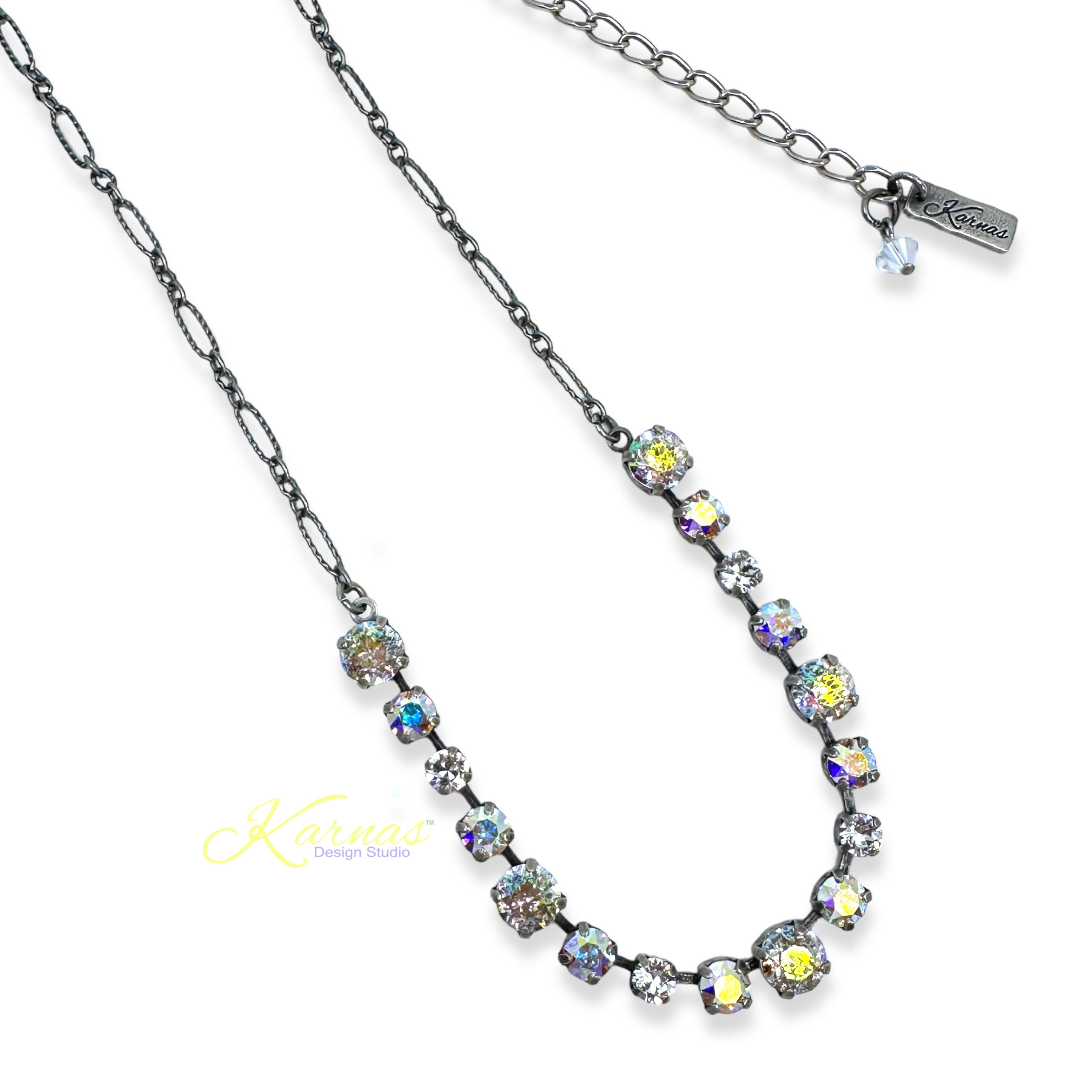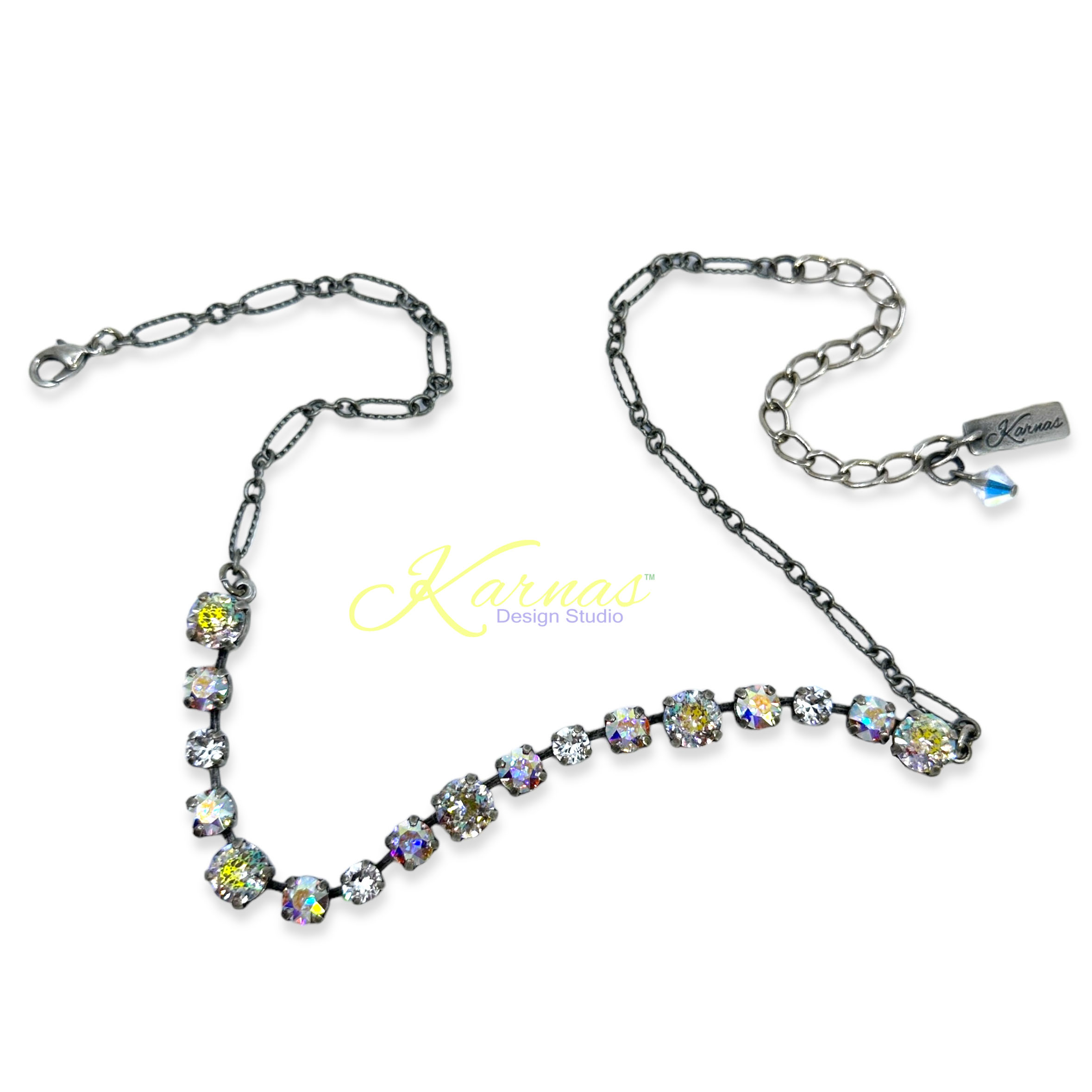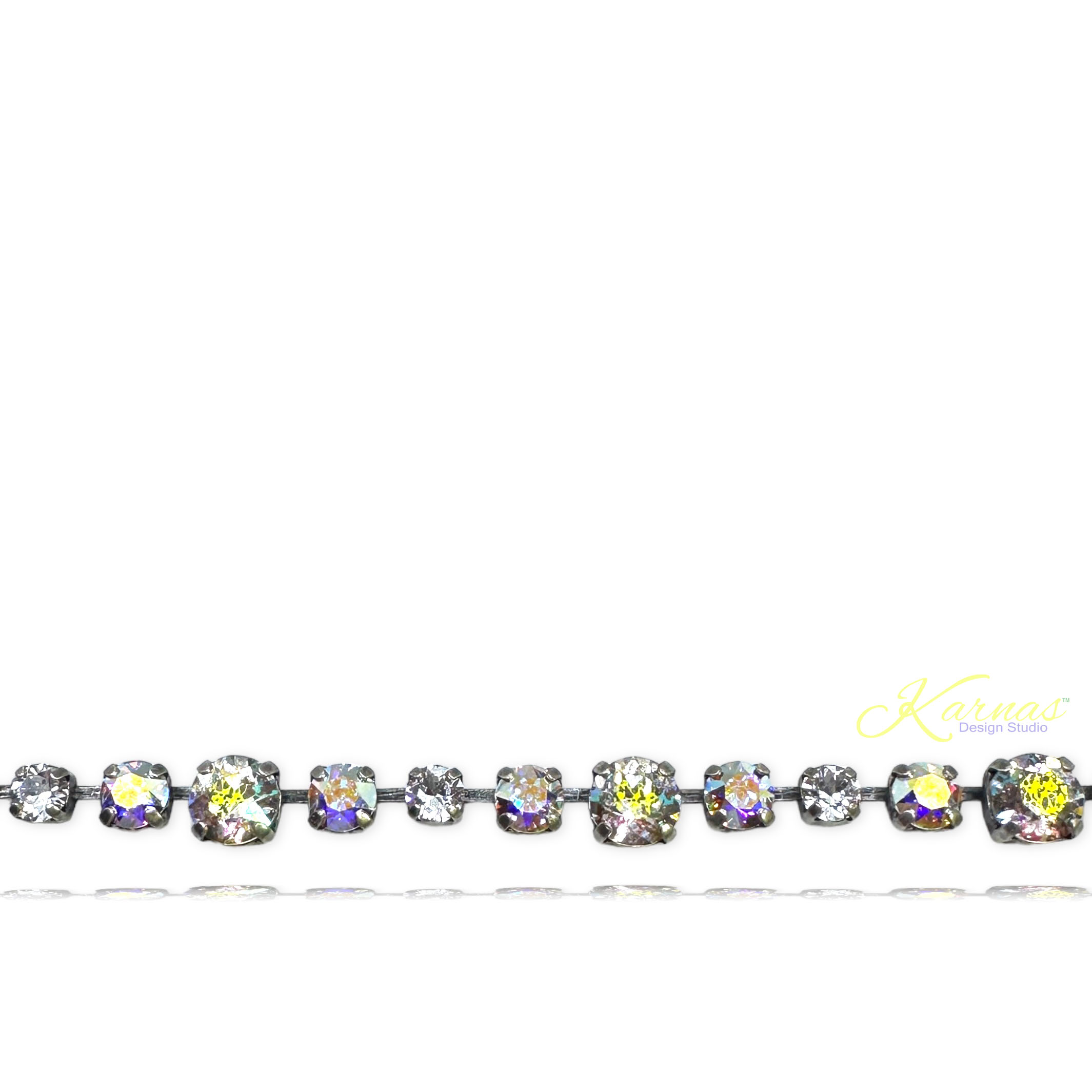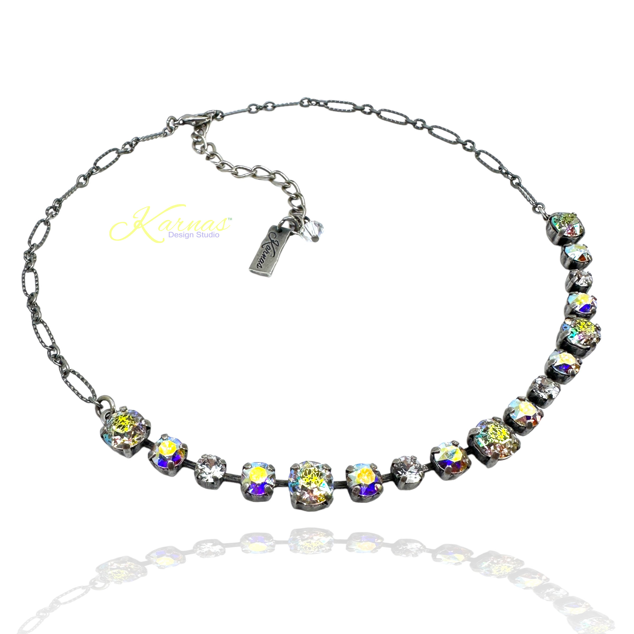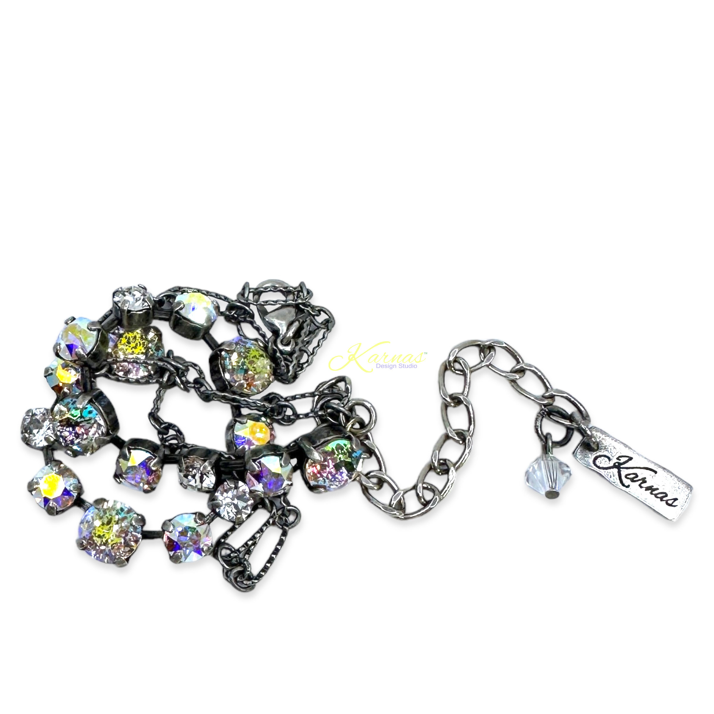 Wherever you go, no matter what the weather, always bring your own sunshine! This cute piece has hints of yellow, Crystal AB, clear, blue, and patina that perfectly combine for a light and refreshing look.