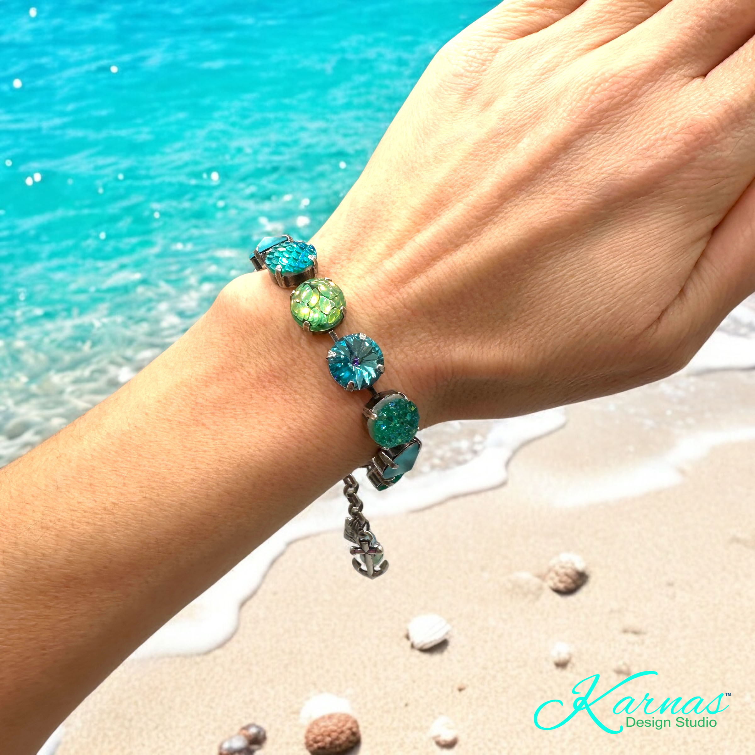 This enchanting bracelet is sure to captivate anyone who lays eyes on it! This magnetic combination of turquoise elements and rare Light Turquoise Austrian crystals radiate a marvelous aura.