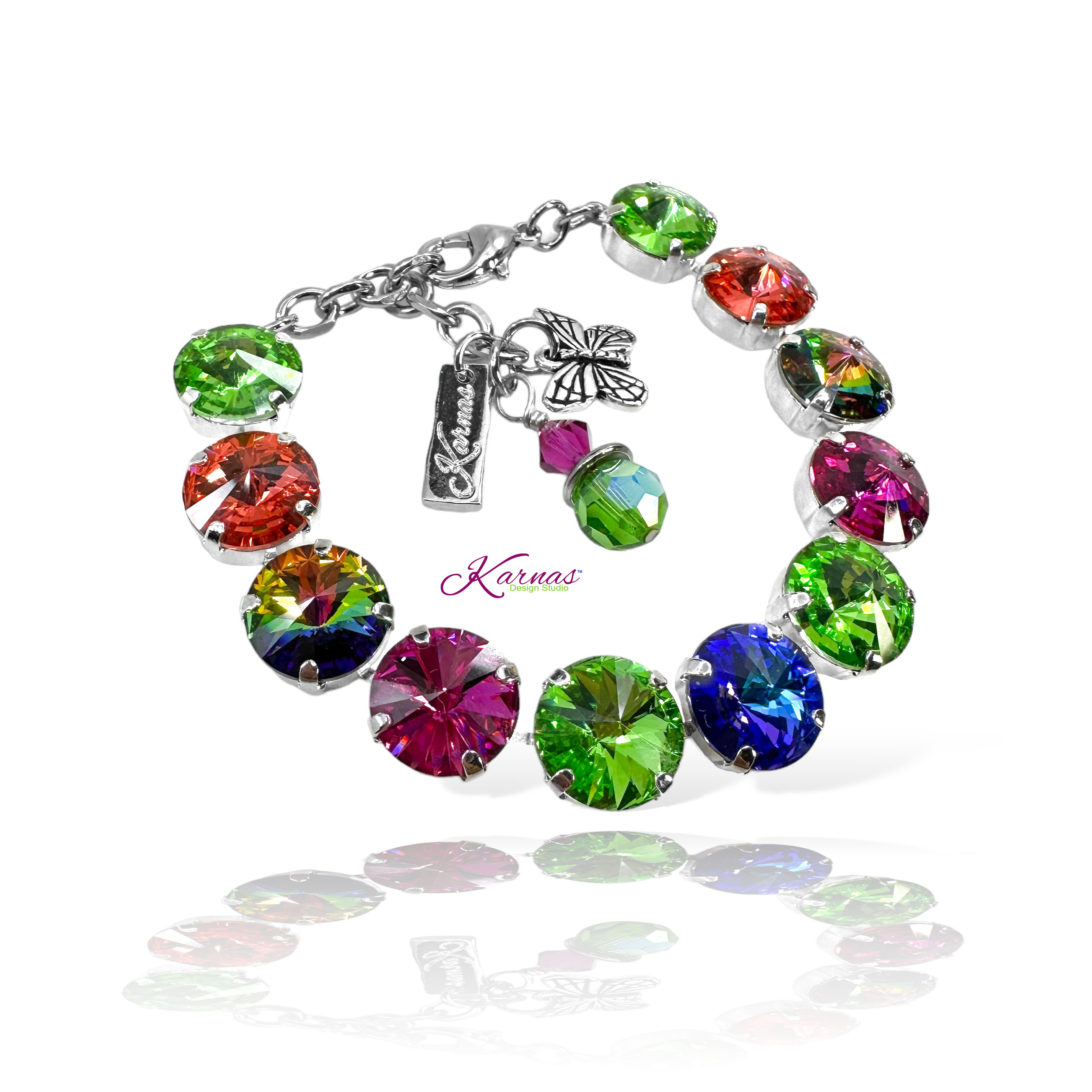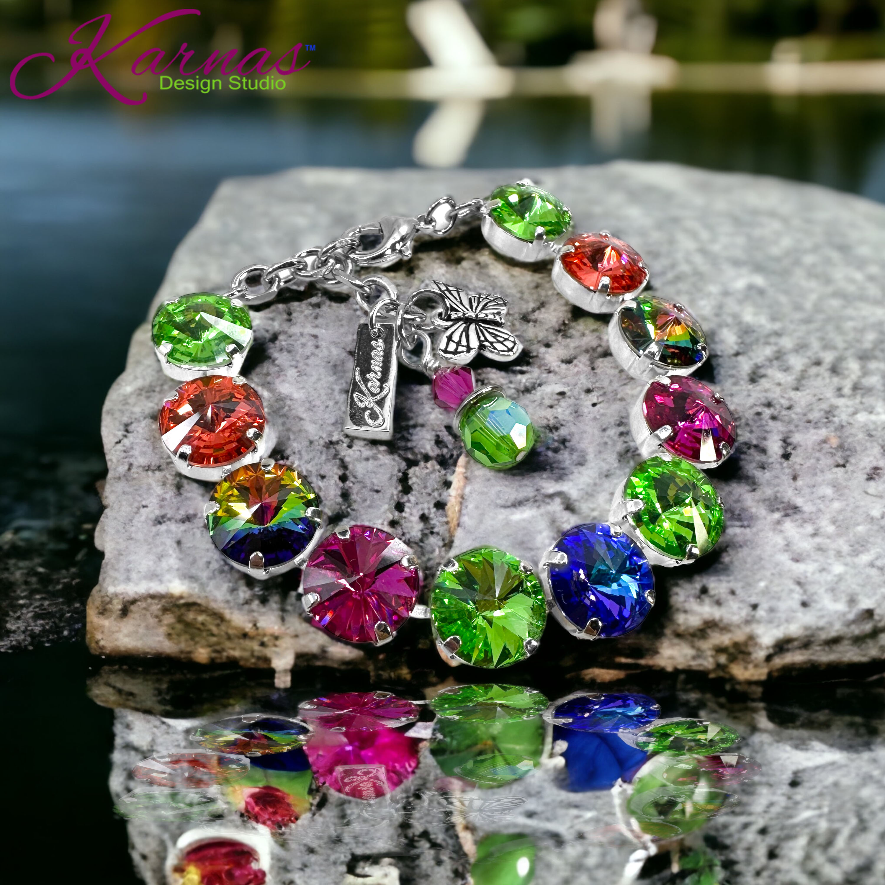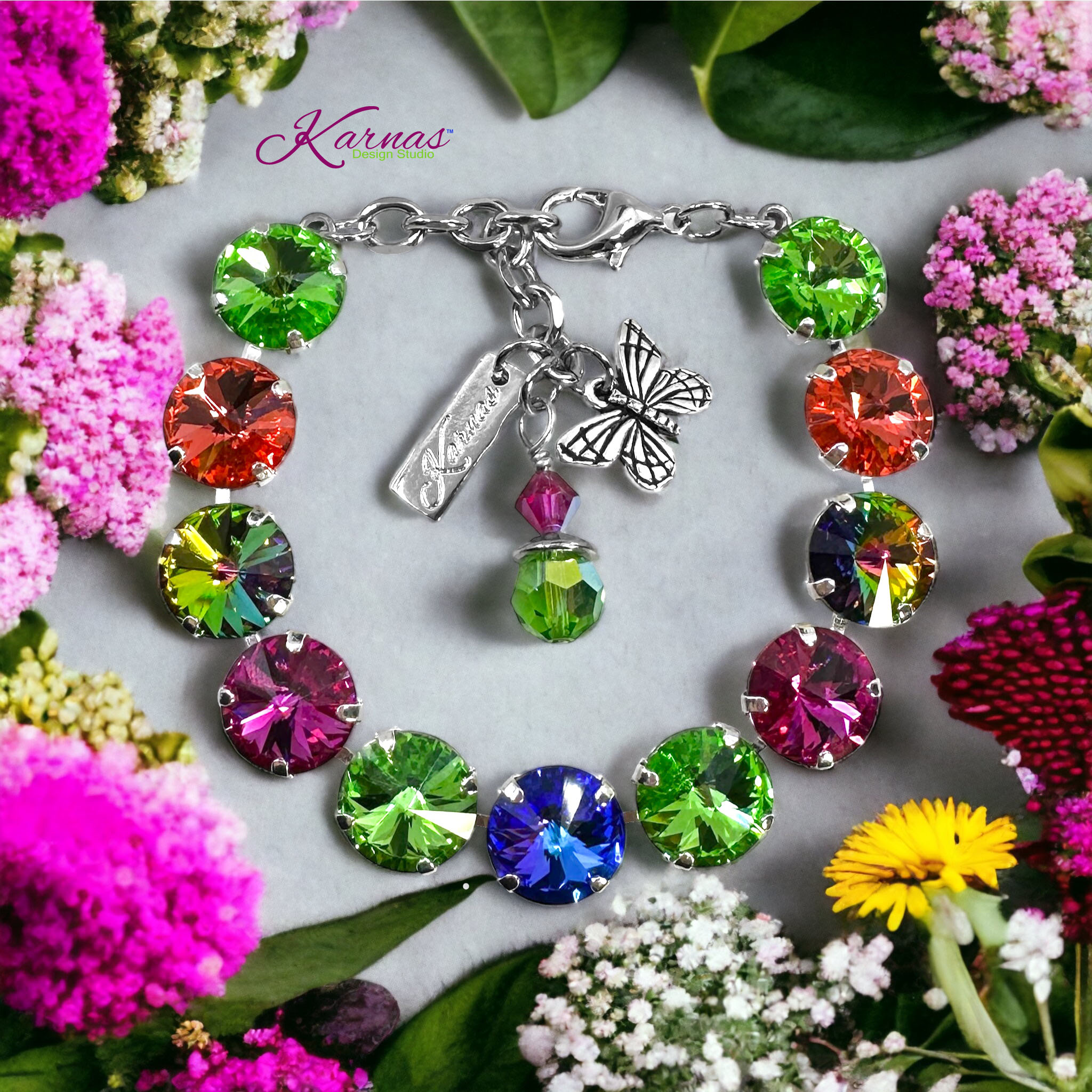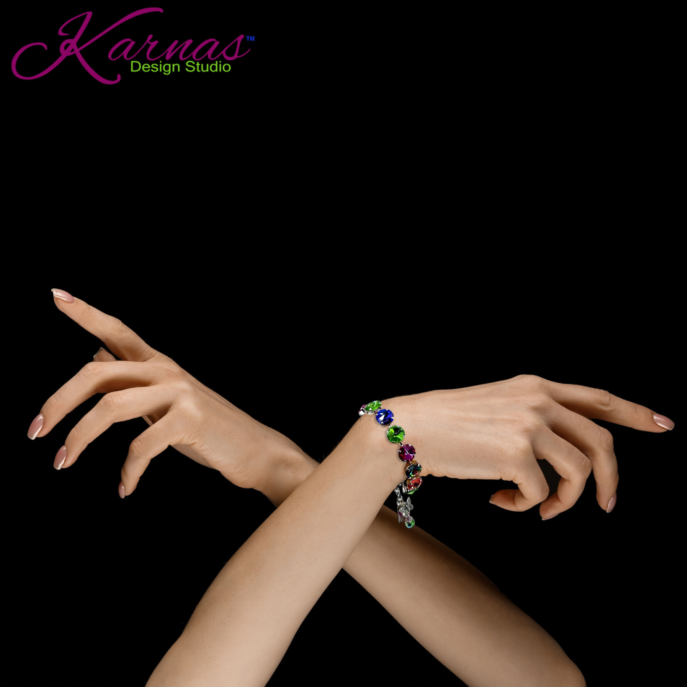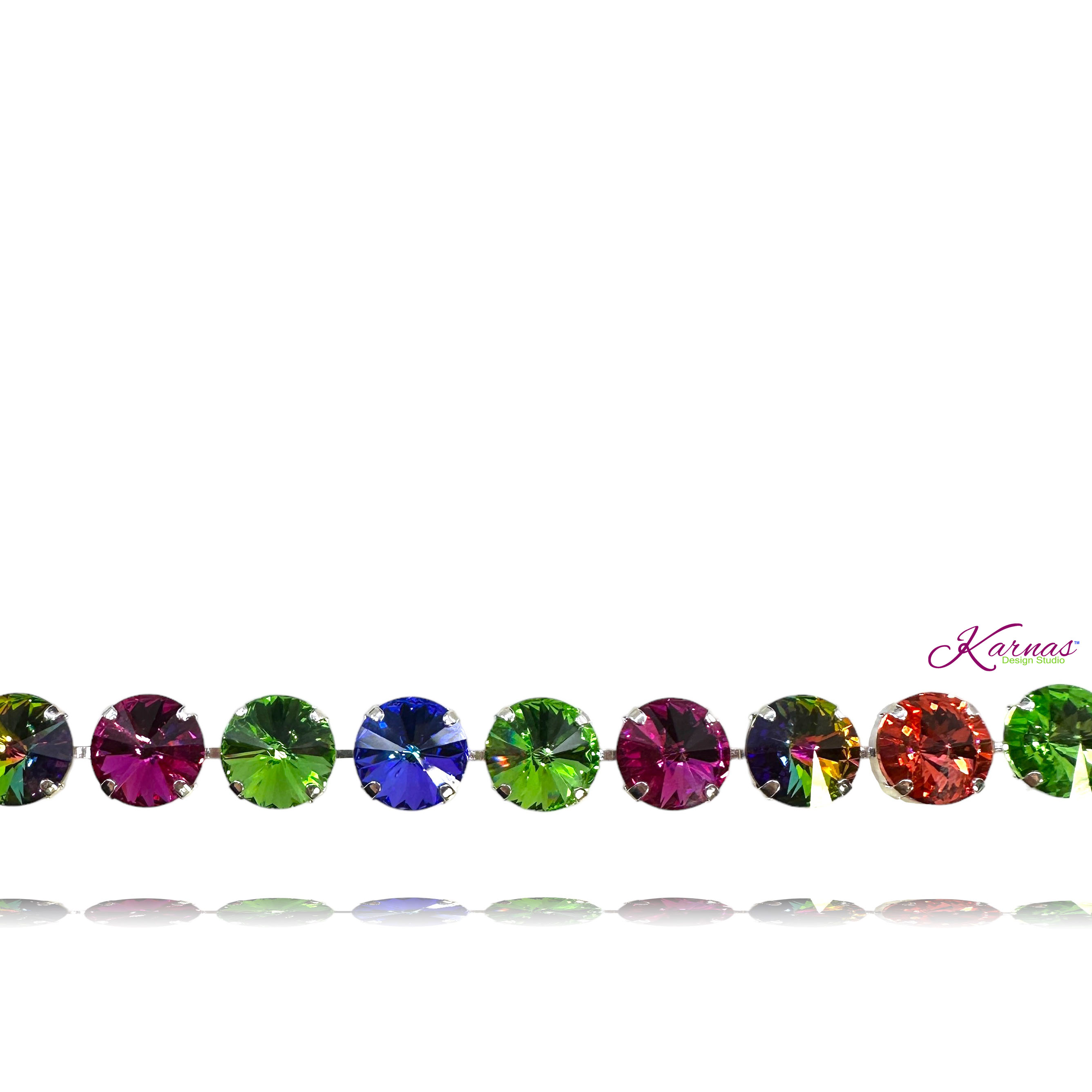 Finish shown in photos is Rhodium Silver. The standard length is 7-8″ usable length (approximately, each piece is unique). We do offer additional size & color options, please see the drop down menu or ask us!