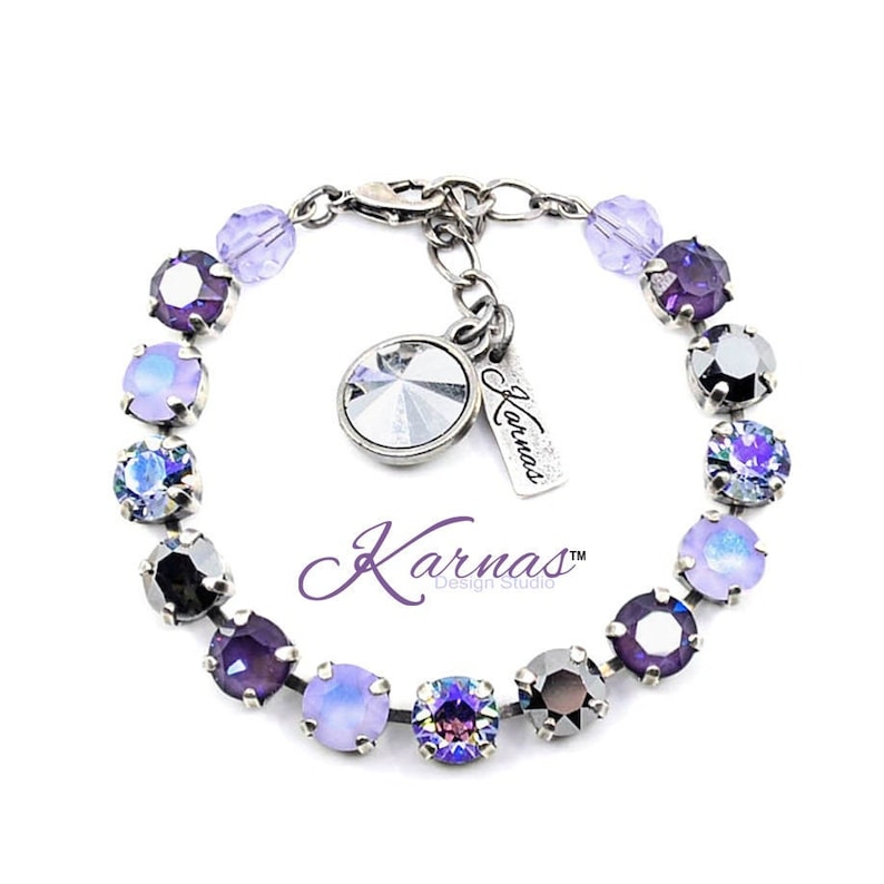Finish shown in photos is Antique Silver. The standard length is 6.75-7.75″ usable length (approximately, each piece is unique). Charms will include the bezel and 12mm crystal as seen. Tag only option includes small accent crystal and tag.