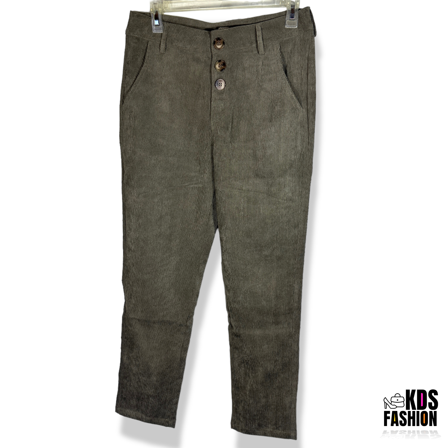 Uniq 4 Button Olive Khaki Green Corduroy Cropped Ankle Pants Medium NWT