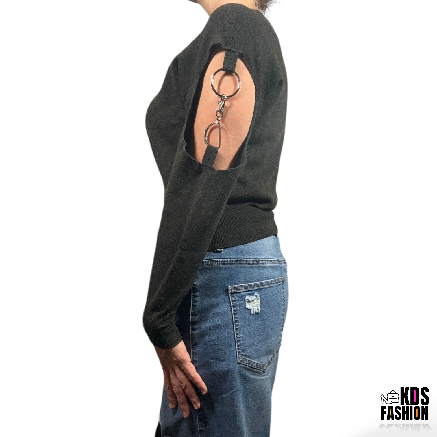 Brand new with tags. Unique open sleeve with horsebit style accent. A trendy conversation piece for fall & winter. 50% rayon, 30% nylon, and 20% polyester. Retails for $62.