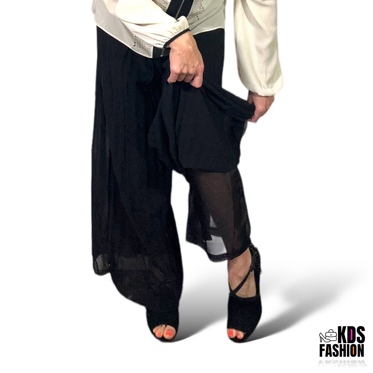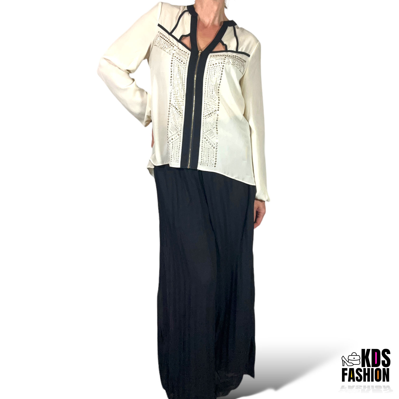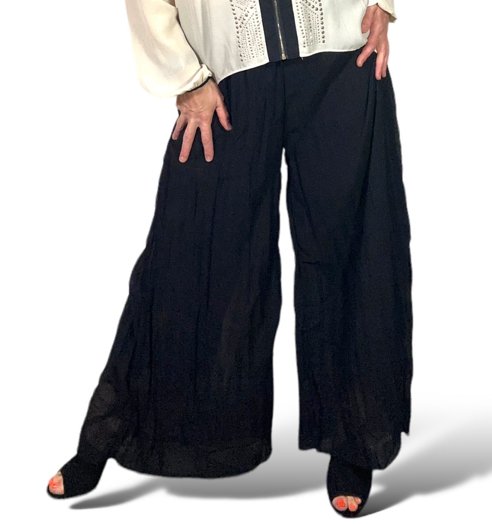 Brand new with tags. Retails for $78. Elastic satin waistband has lots of stretch. Wide leg with sheer panels, fully lined. Super chic and stylish. 95% polyester and 5% spandex.