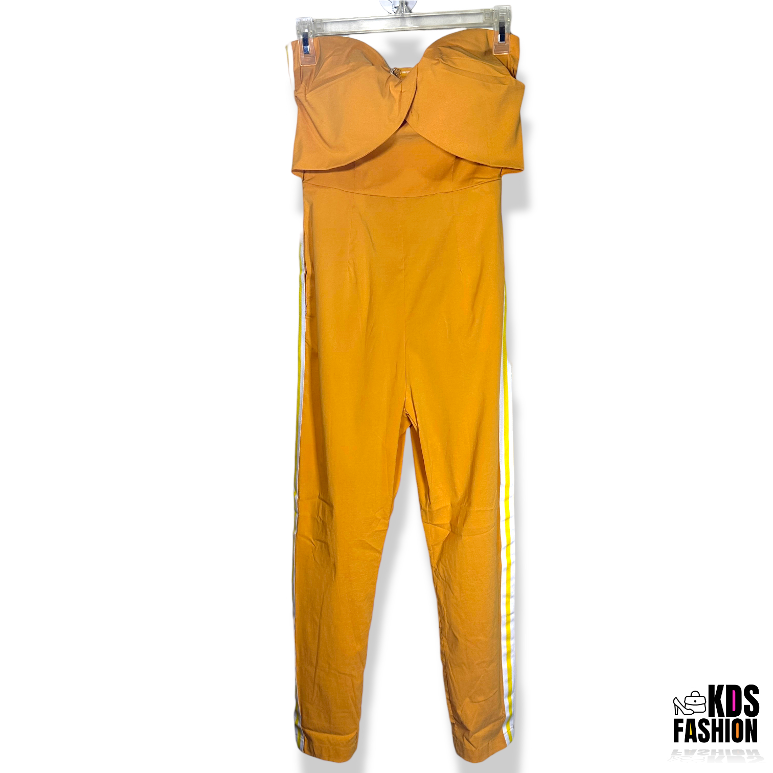 Brand new with tags. This jumpsuit will have you turning heads on the dance floor! Unique and one-of-a-kind. Zipper back with hook/eye closure. Has stretch and is form fitting. Retails for $78. 95% polyester and 5% spandex.