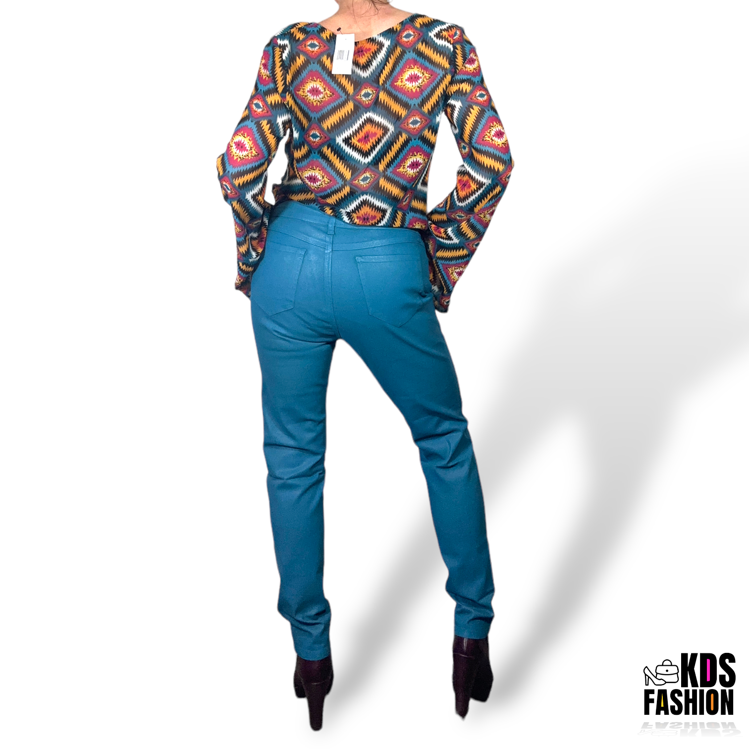Brand new with tags. These are so uniq, there is a coating on top of the pants. They almost appear “painted” and are a smooth texture. TONS of stretch to these, and an excellent fit. 95% cotton and 5% spandex. Skinny fit.