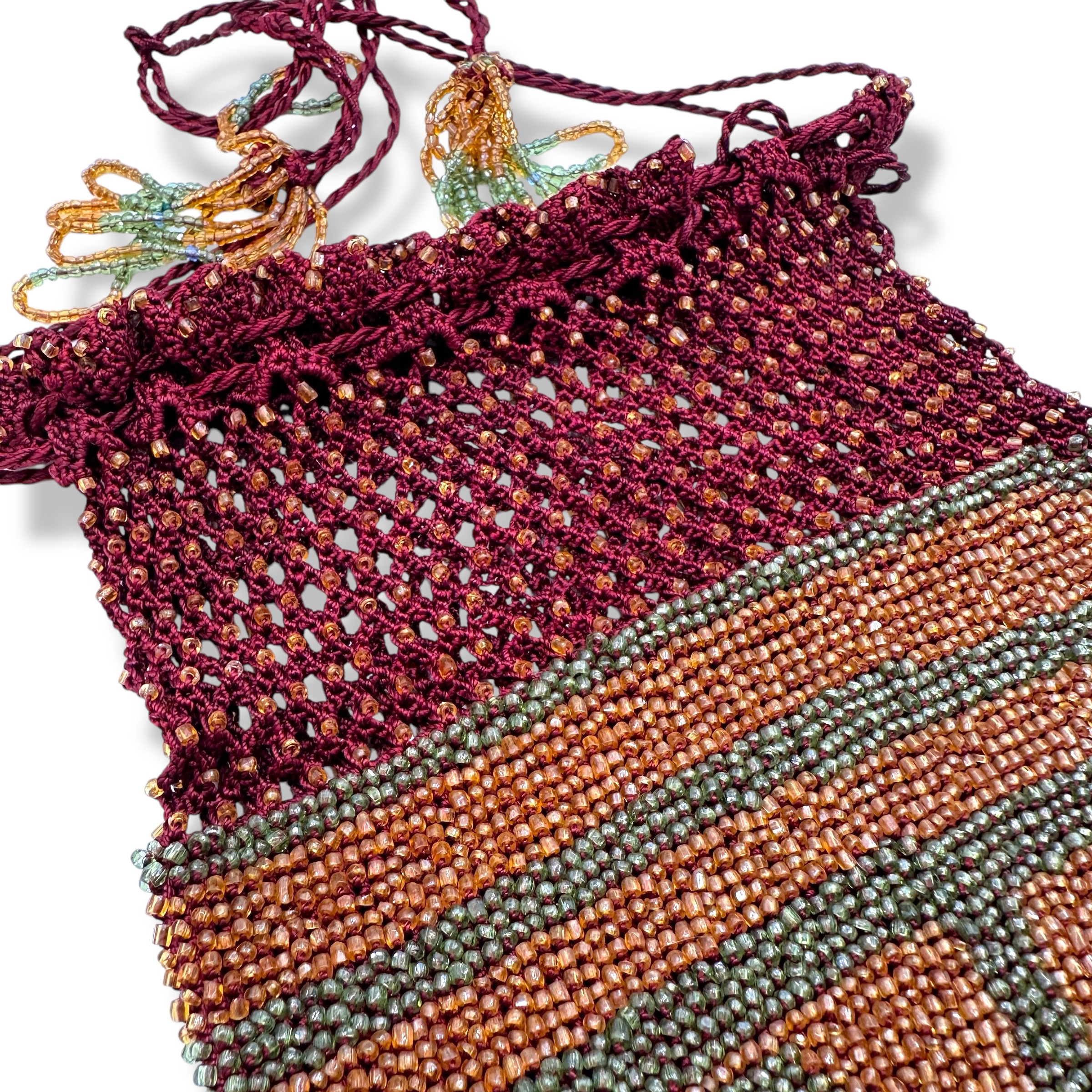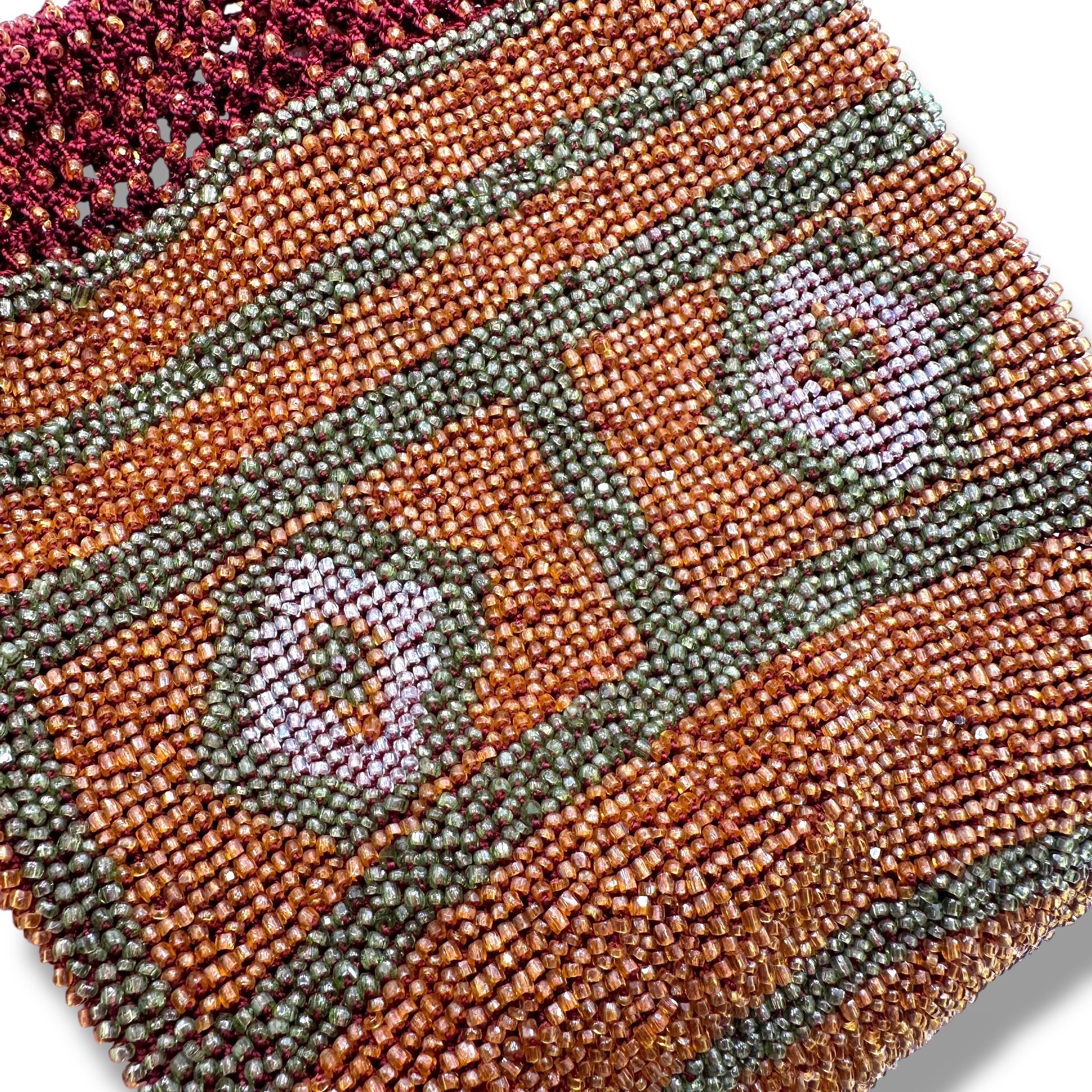 Victorian Era Vintage Micro-Beaded Drawstring Handbag w/Tassels