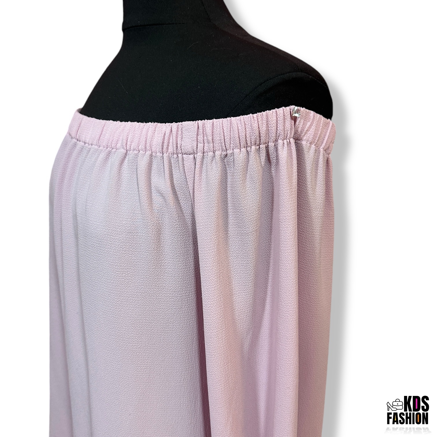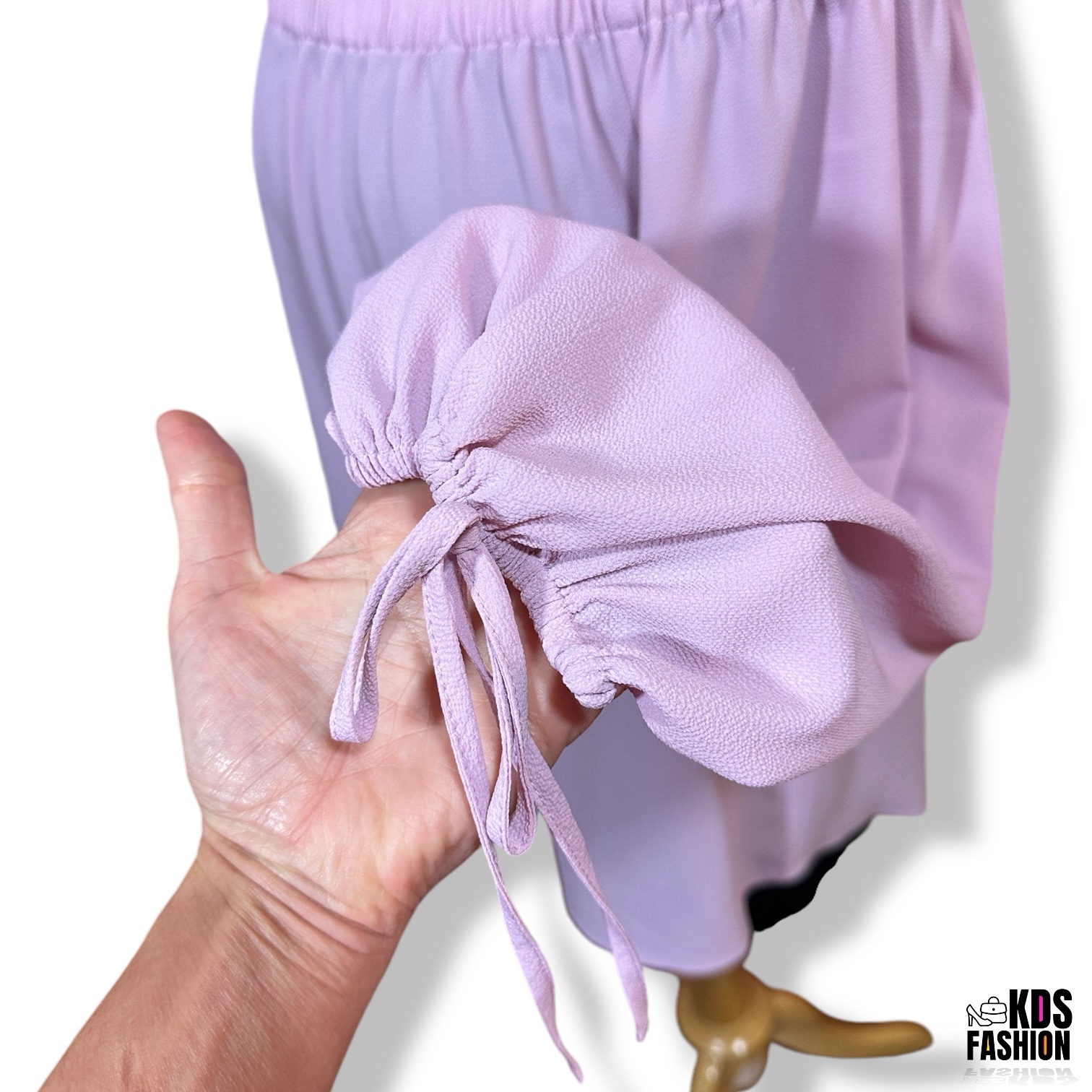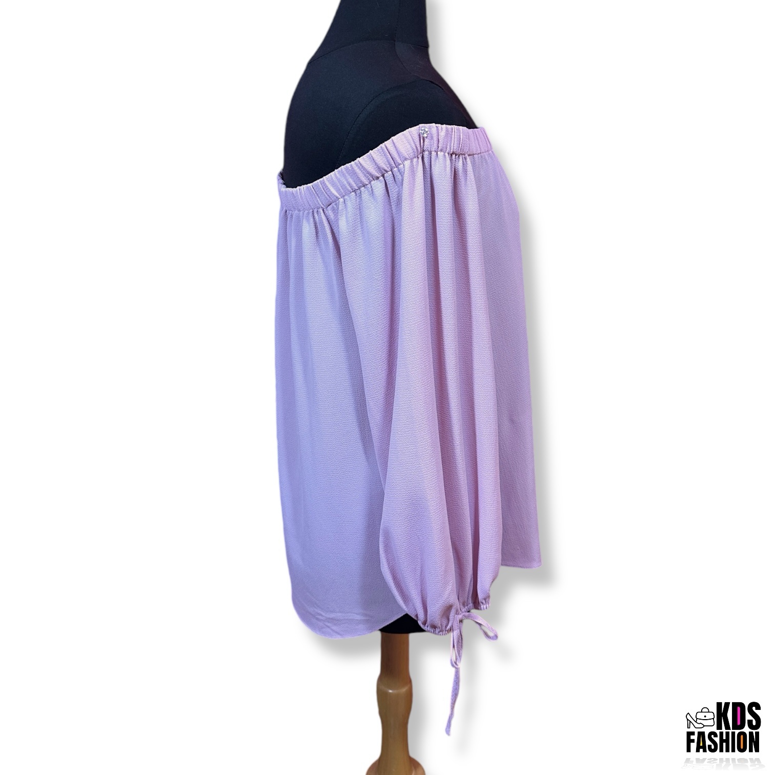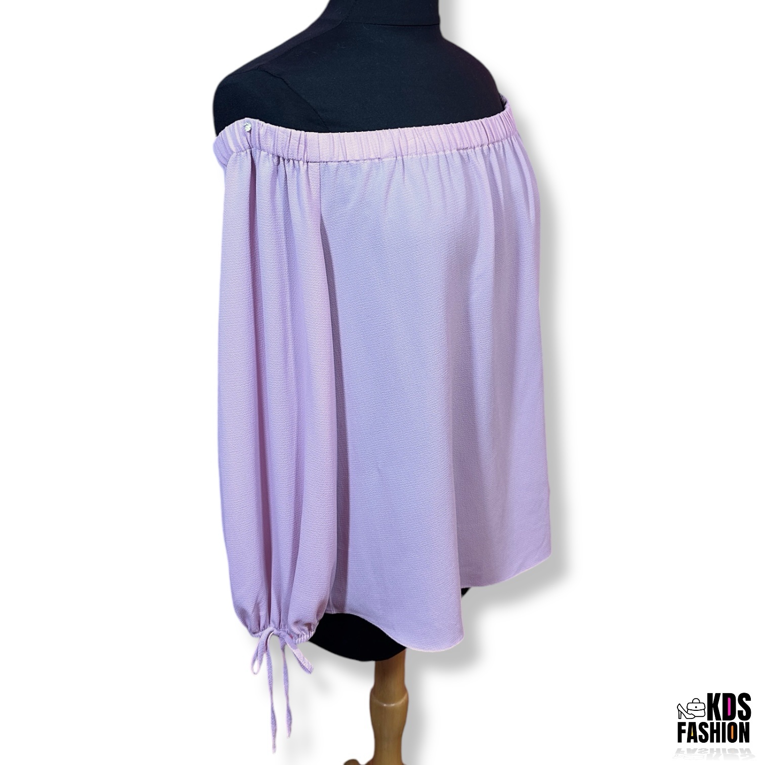 Excellent condition, color is a light lavender. Elastic sleeves with ties. Elastic at the shoulders, very flowing and lightweight.